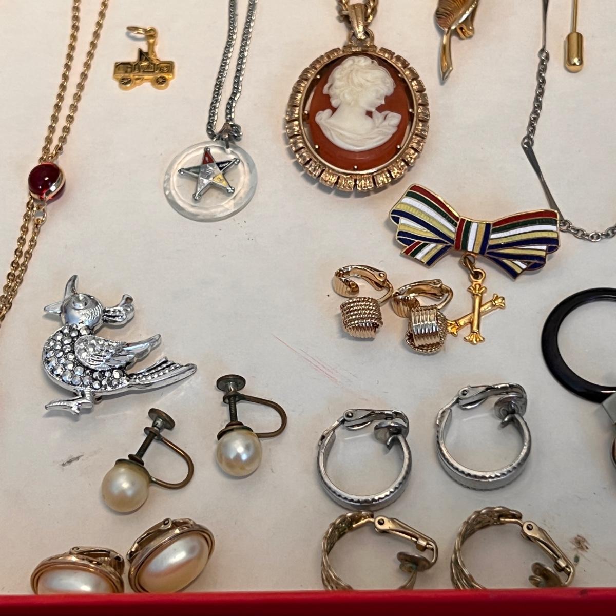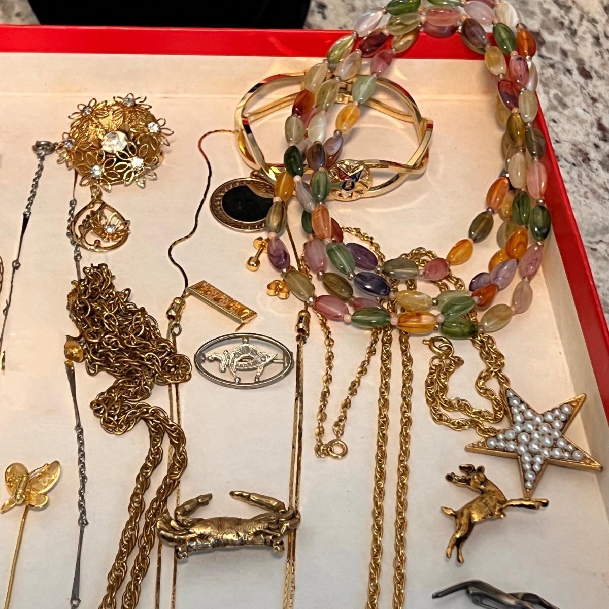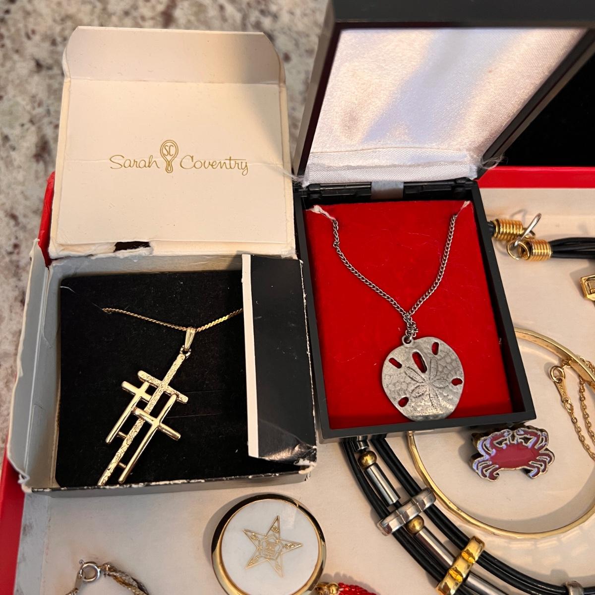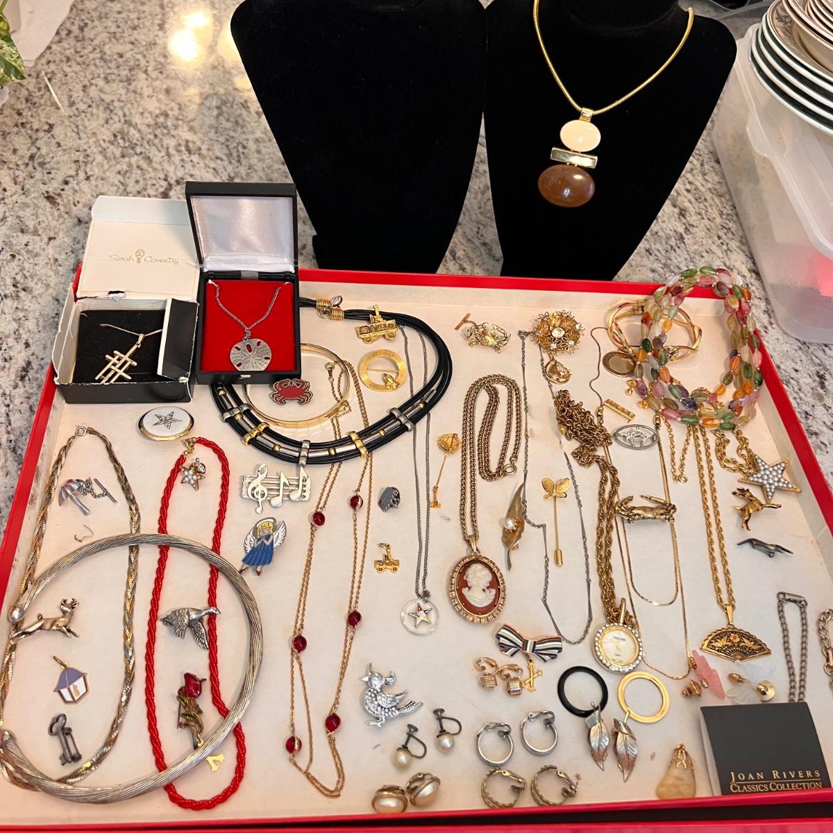 Sarah Coventry, Avon, hallmarked pewter and more. Necklaces earrings brooches bracelets