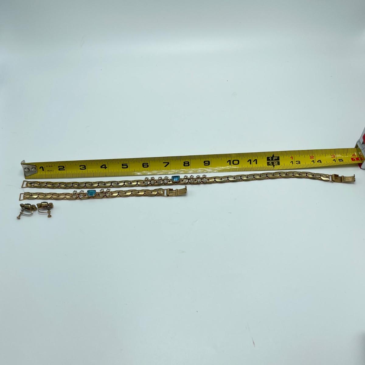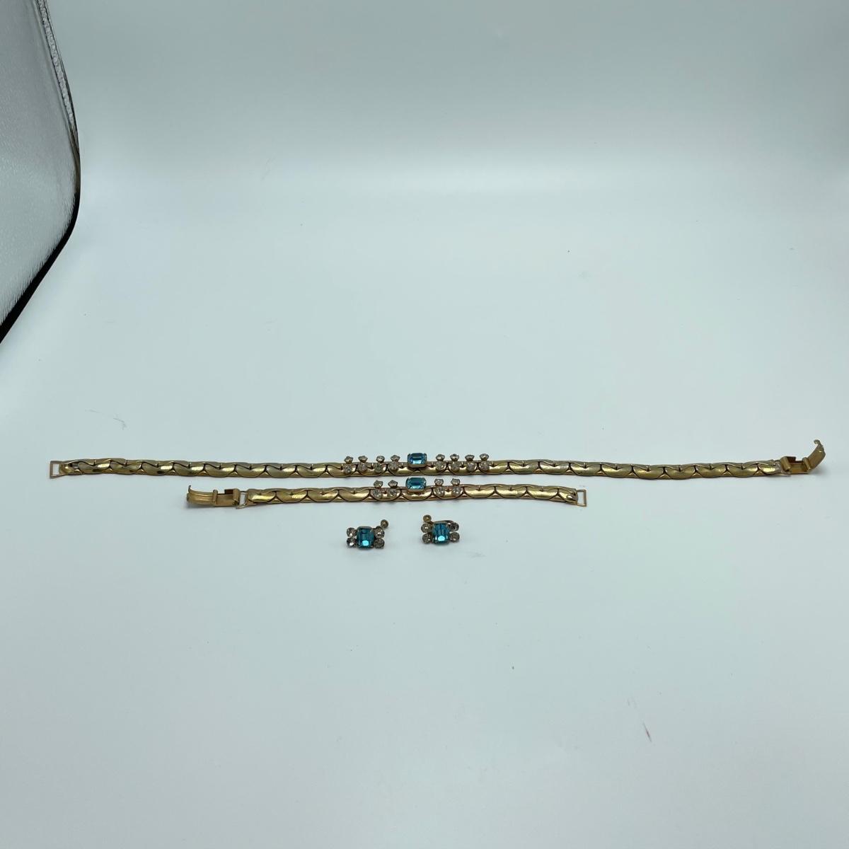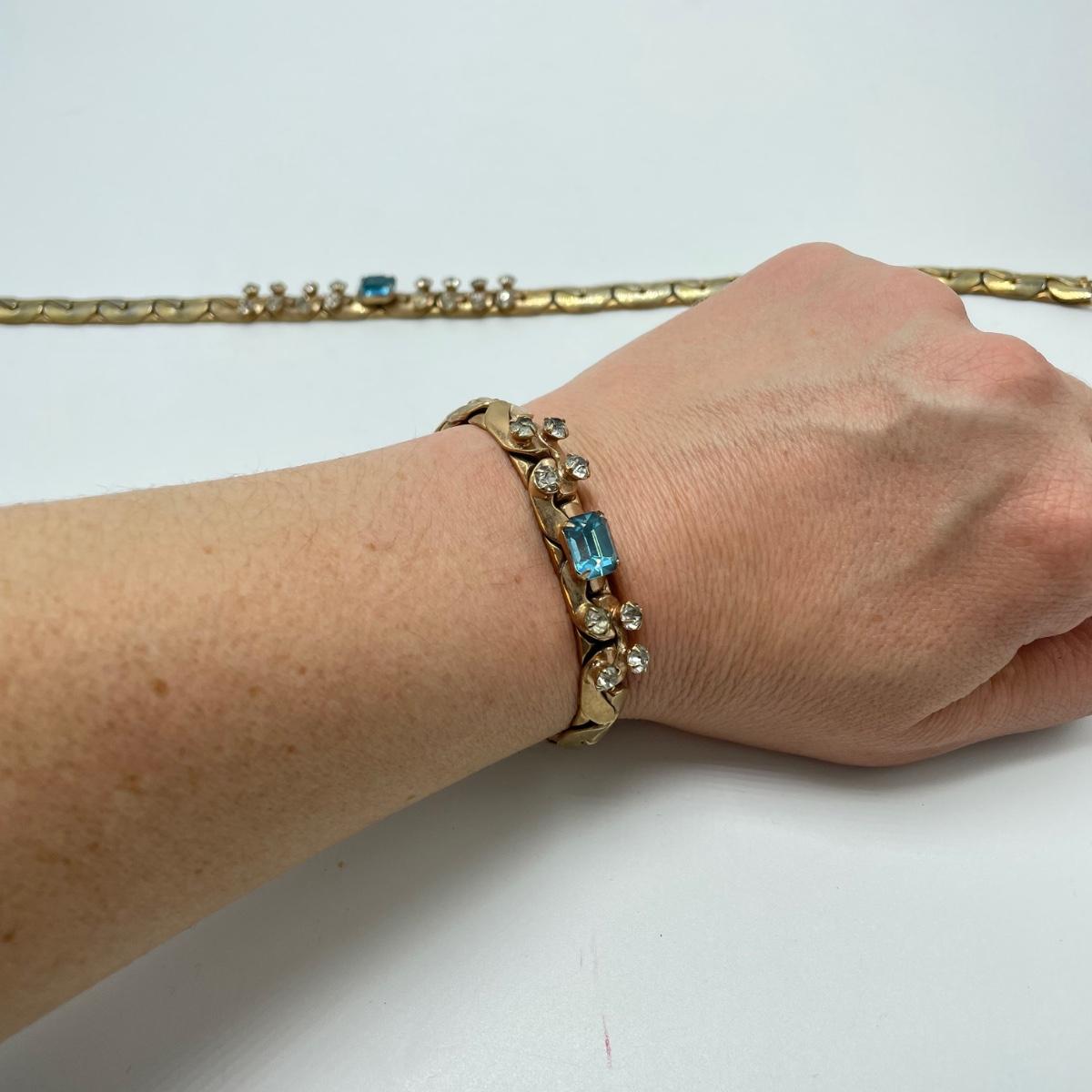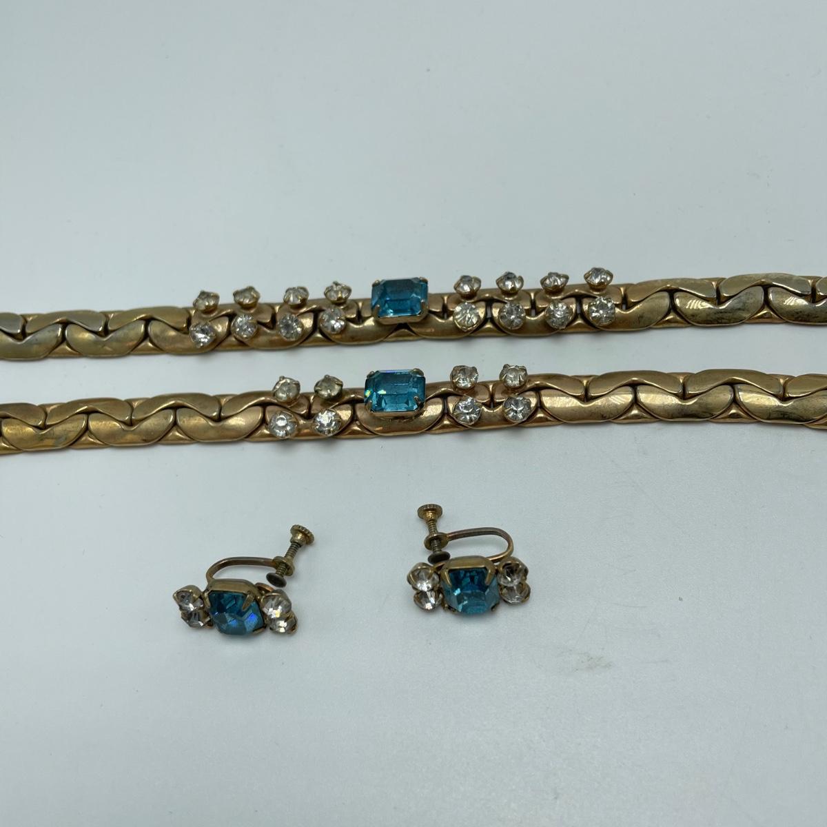 Matching set includes two clip earrings, a small choker style necklace and bracelet. Pieces are heavy and have a slightly reddish underside. See images. No markings were found. Shipping available.