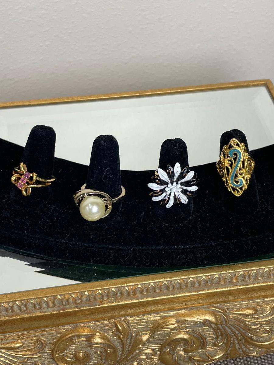 All jewelry items are enlarged to show details. Photography props are not included. Colors may vary based on the user’s screen.