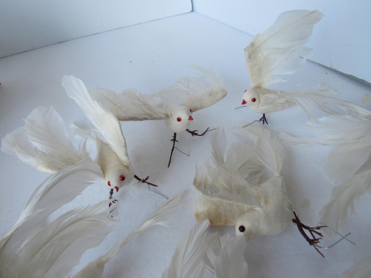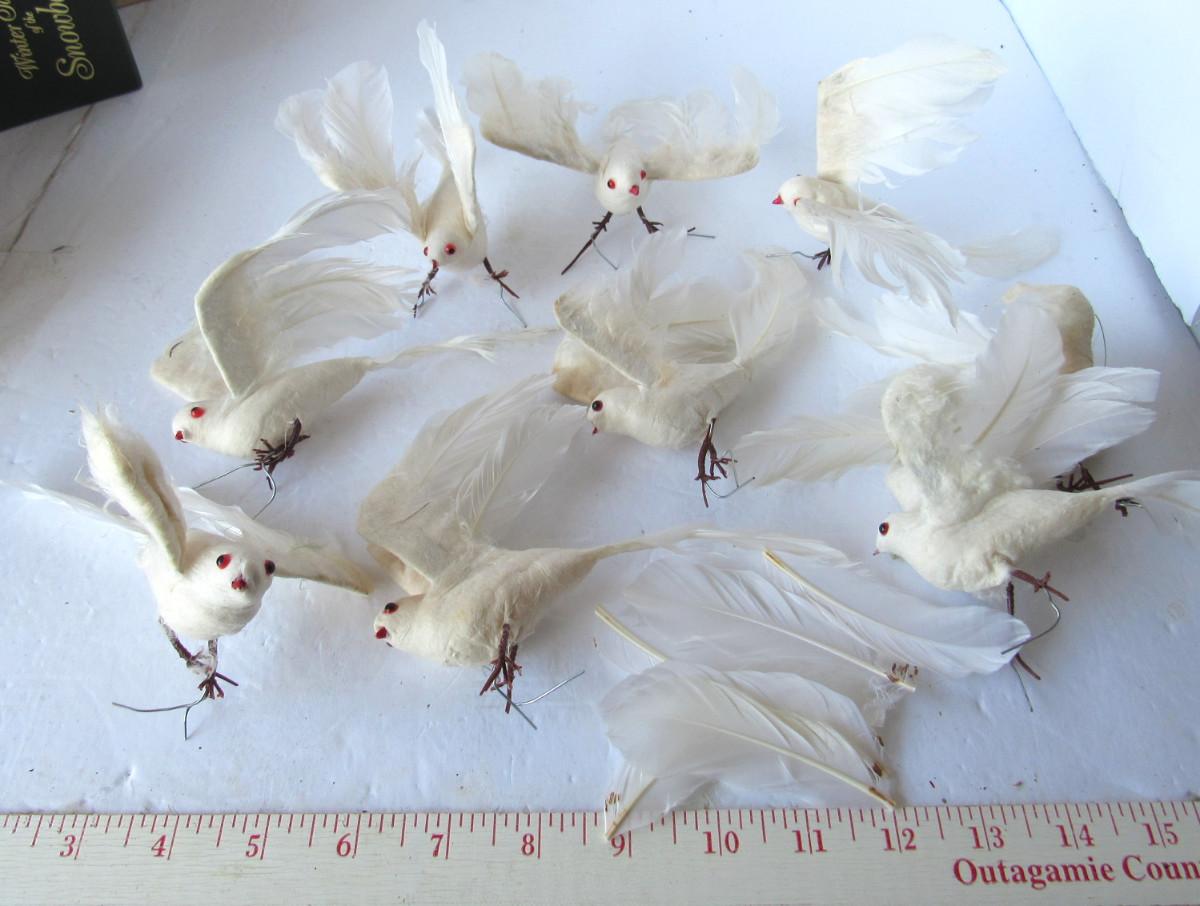 Birds bodies are good and most birds are good. I think 3 have feathers that need to be glued back in - feathers are there. Shipping is available at actual shipping cost plus $5.00 handling fee per box for supplies/labor. See our terms for details. All sales are final. Condition notes may not be all inclusive, we may miss some issues as most vintage items are not in mint condition and have some degree of wear, paint loss, etc, but we always try to note obvious damage.