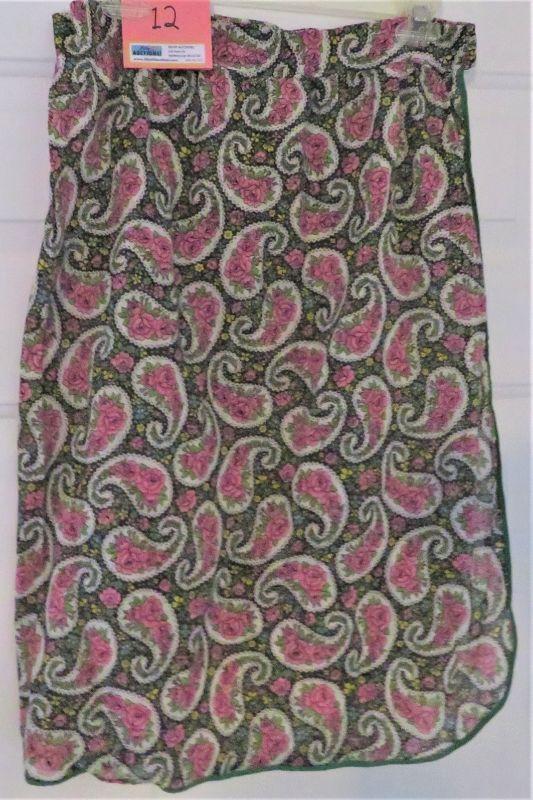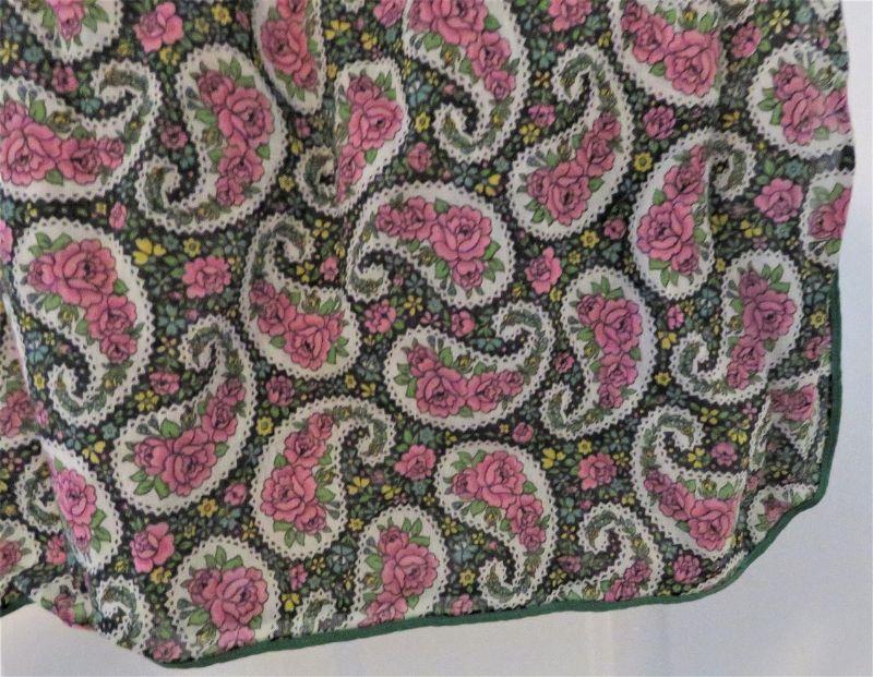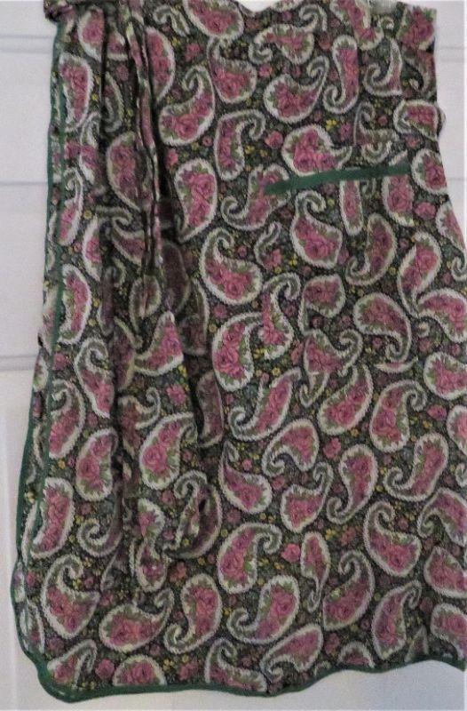 VINTAGE COTTON APRON Pink Green Paisley Floral Design. measures 26" long with Front Pocket, Back ties.