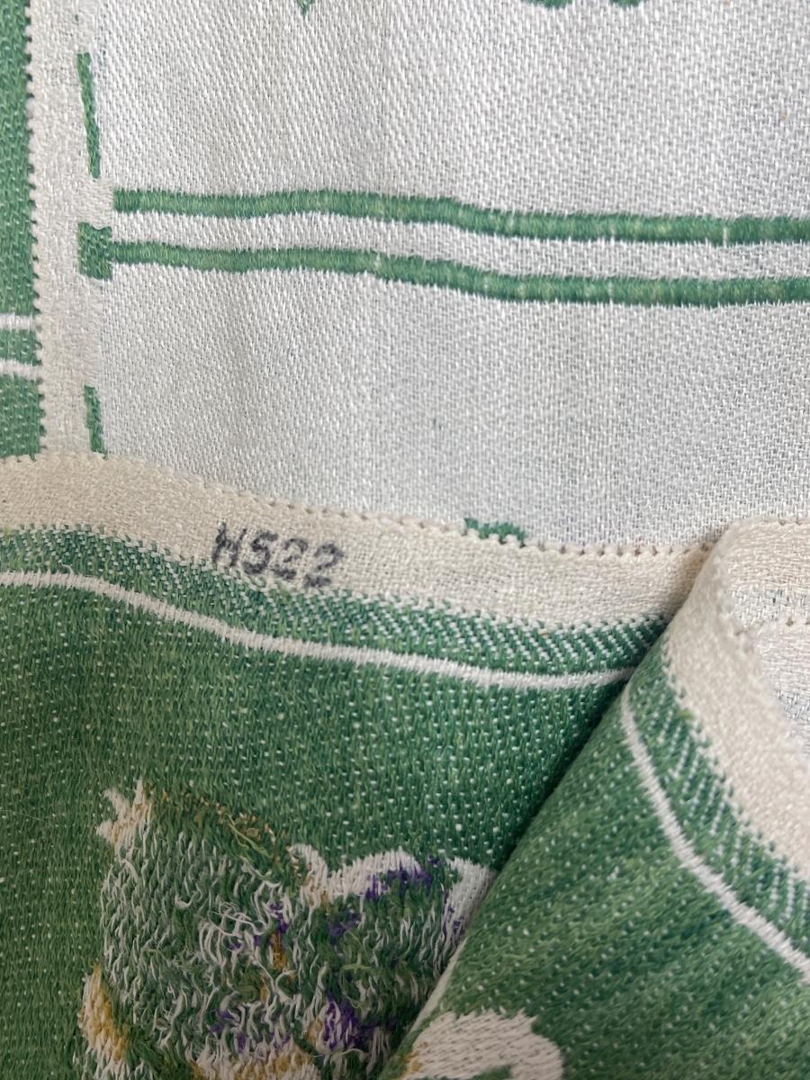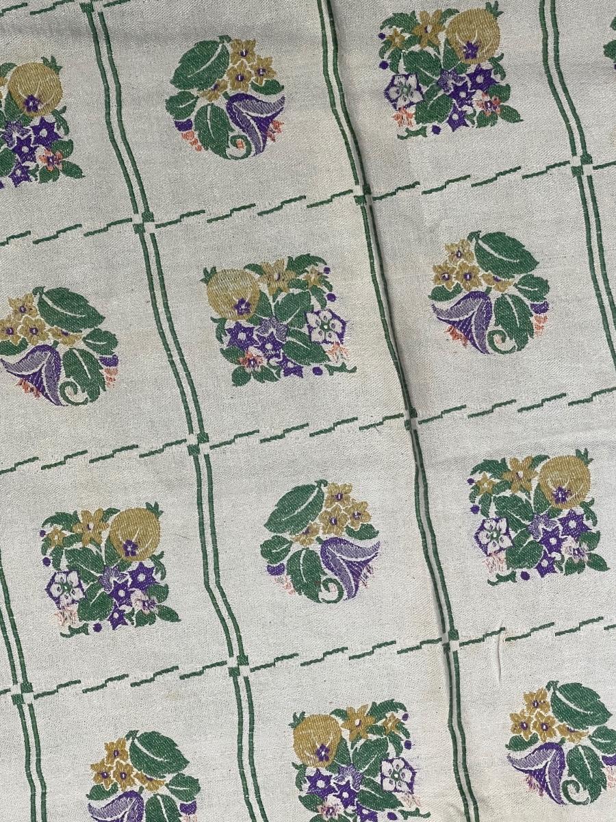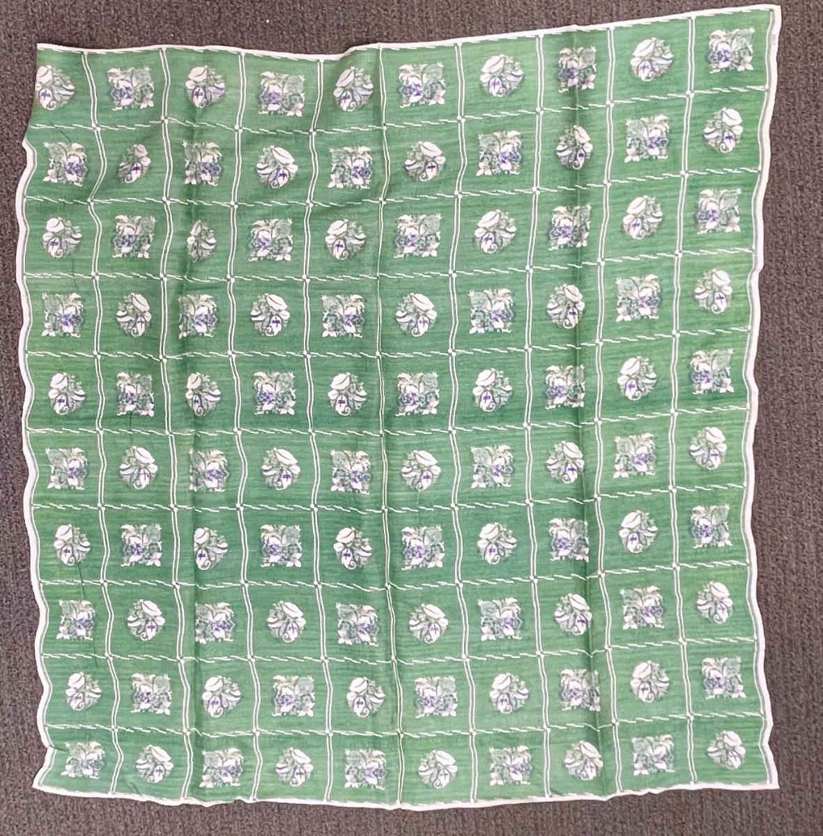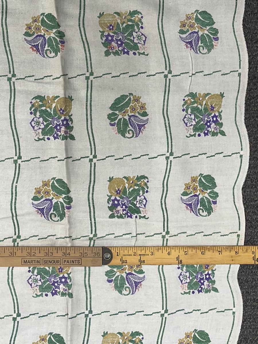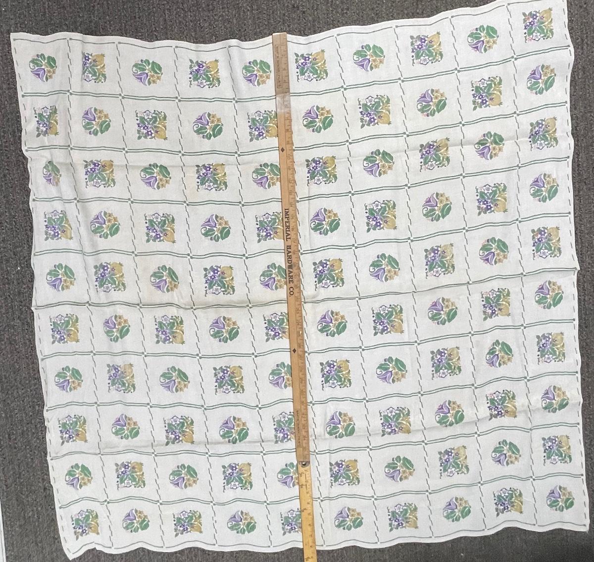 Vintage Cotton Tablecloth square 44" x 44" - purple flowers, gold pineapples green leaves