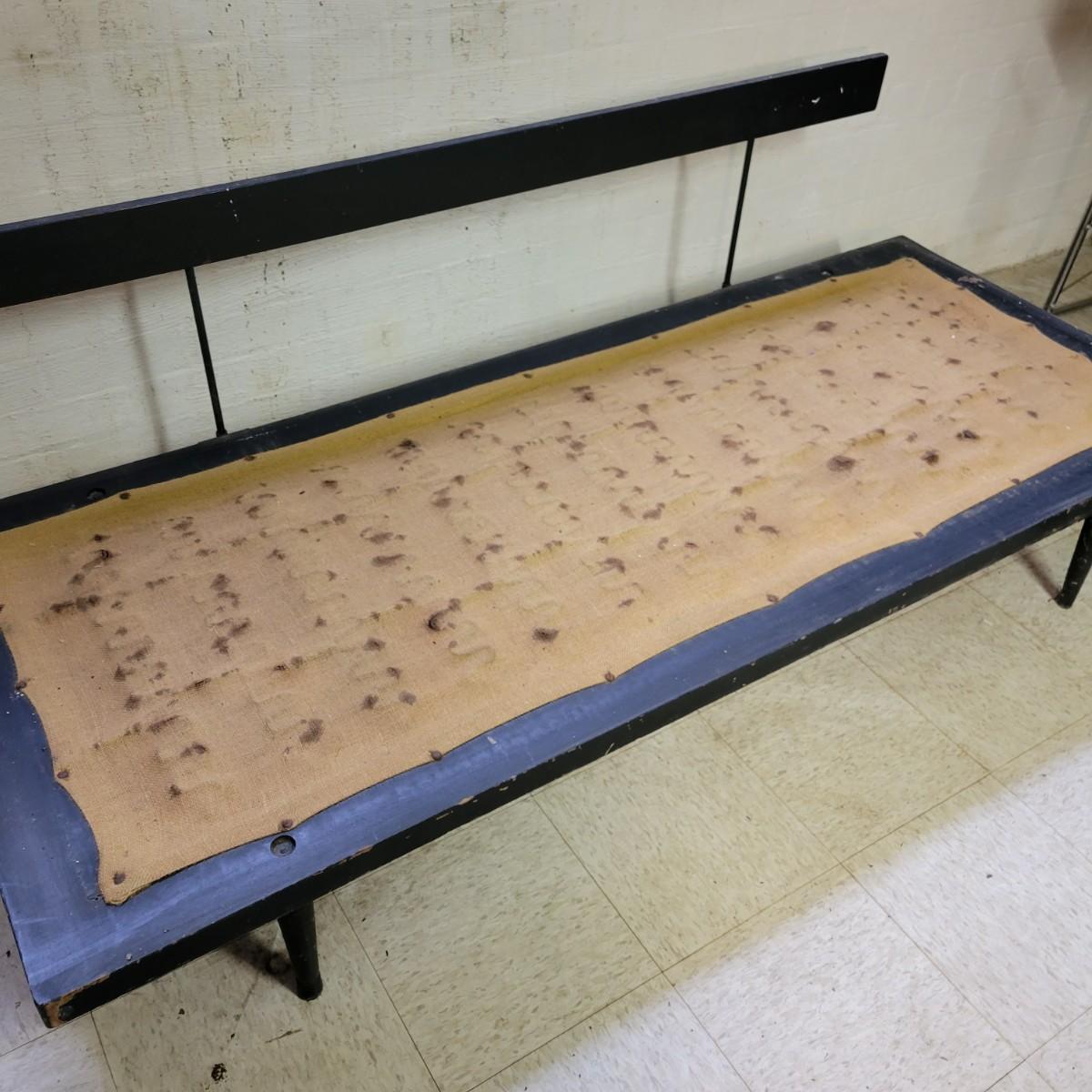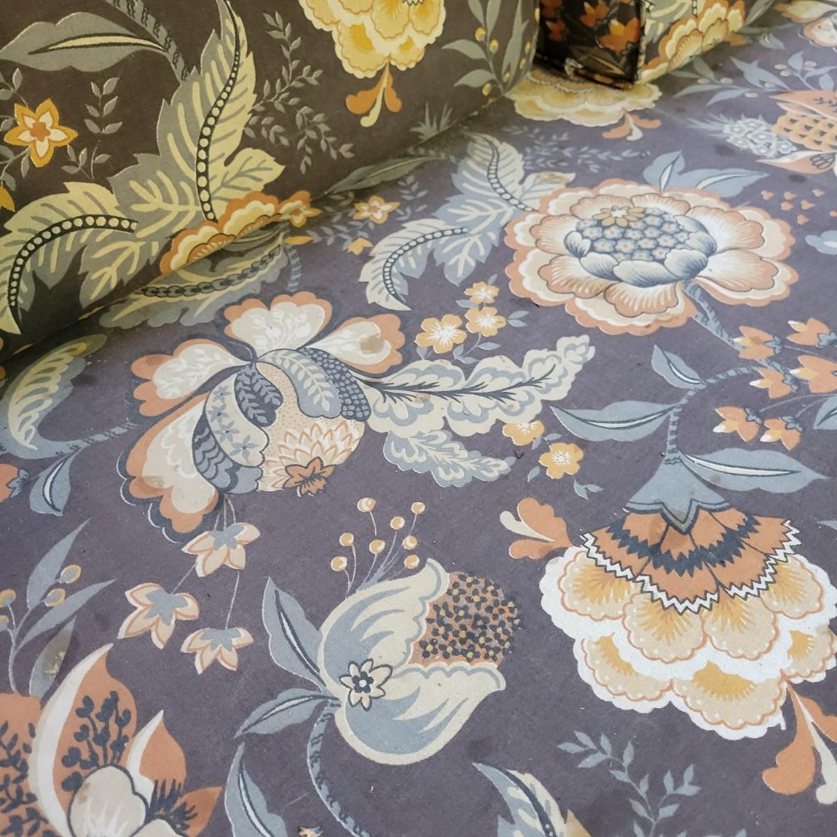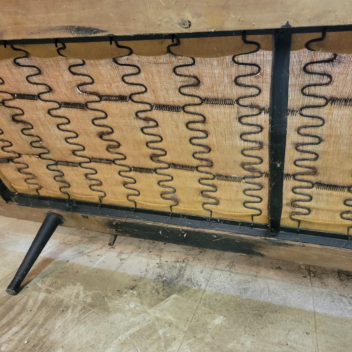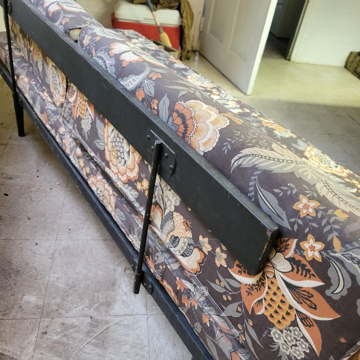 A vintage couch with removable cushions in a floral motif. Couch is in good to fair condition with some chipped paint on the wooden frame that could easily be refinished. Upholstery/cushion is a little faded and has a slight basement odor as it has been in a billiards room in the basement, but is not overwhelming. Couch measures approximately 75" x 30" x 29" with a seat height of 16.5". Local pickup only