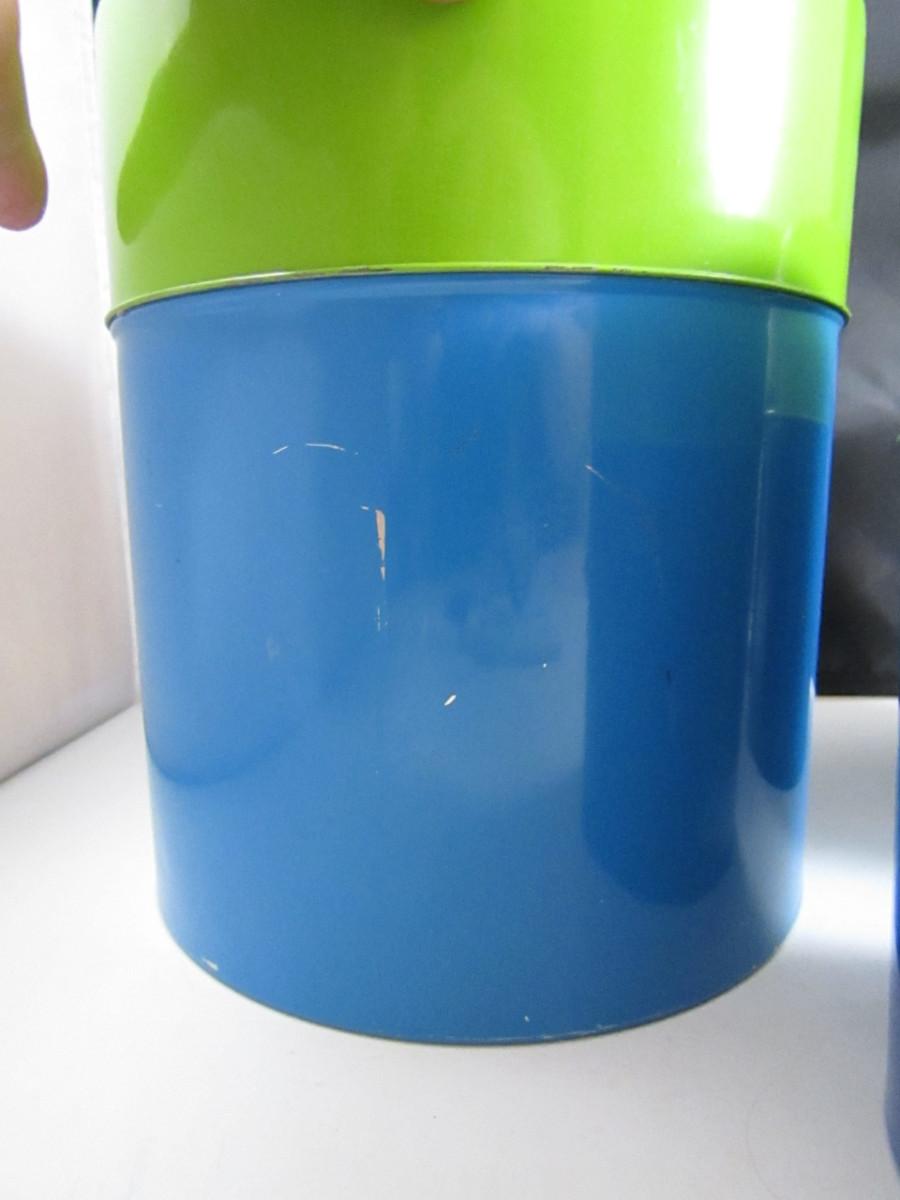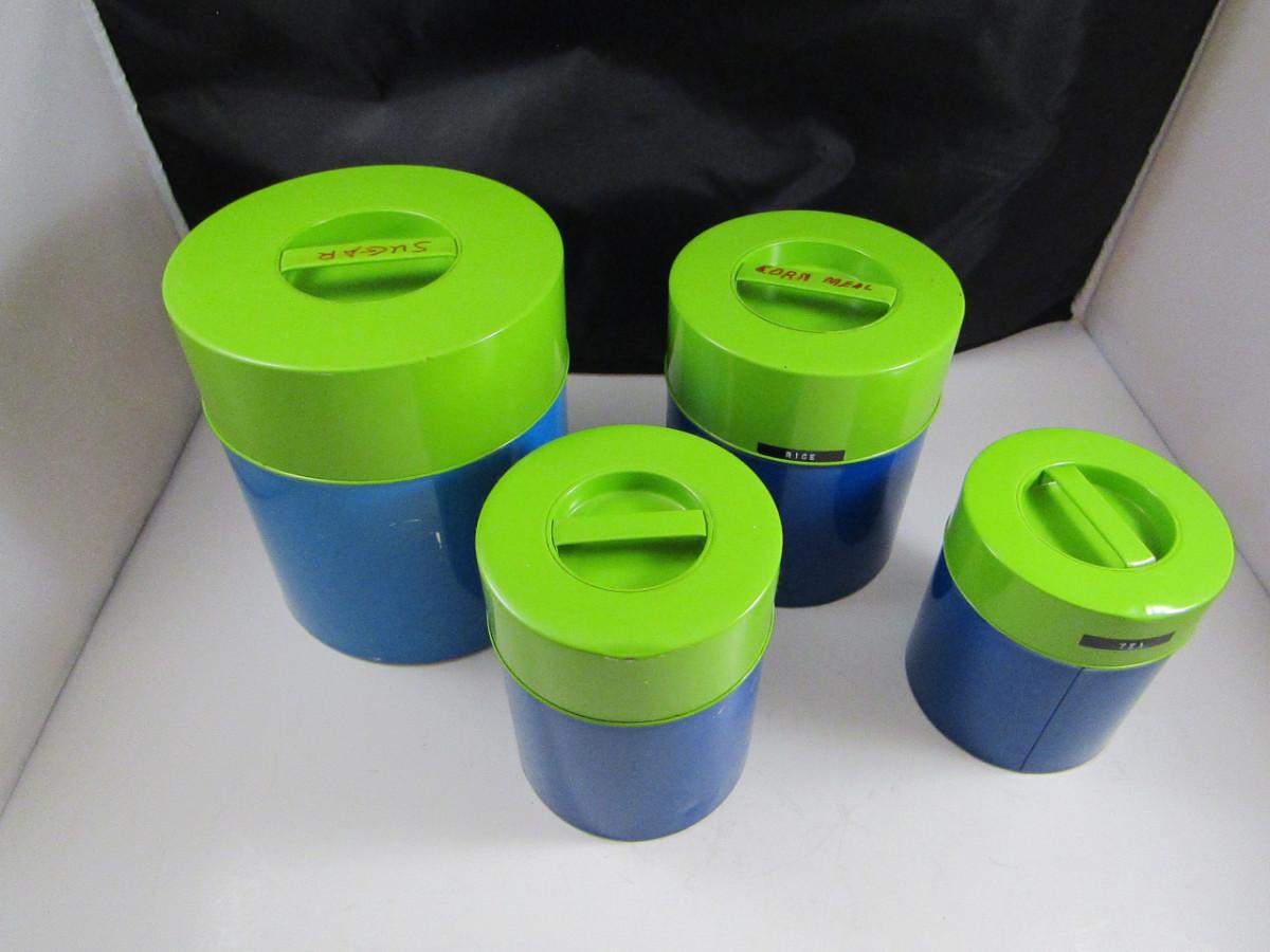 Vintage Counterpoint Metal Dual Tone Canisters- Set of Four. A couple have writing on them.