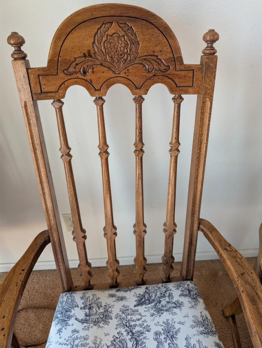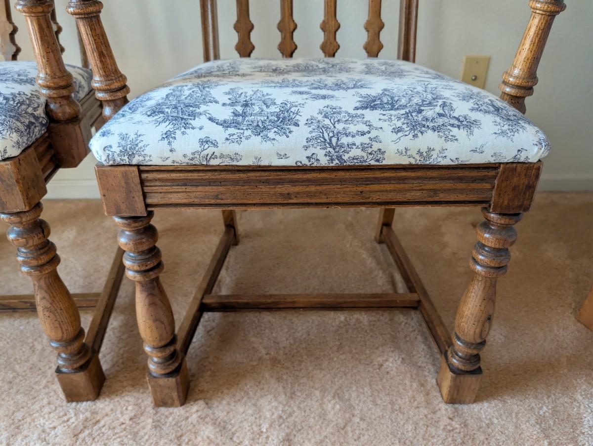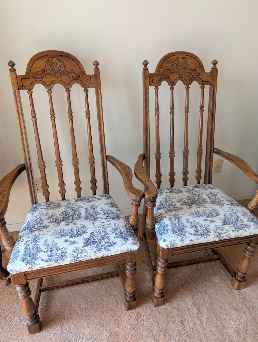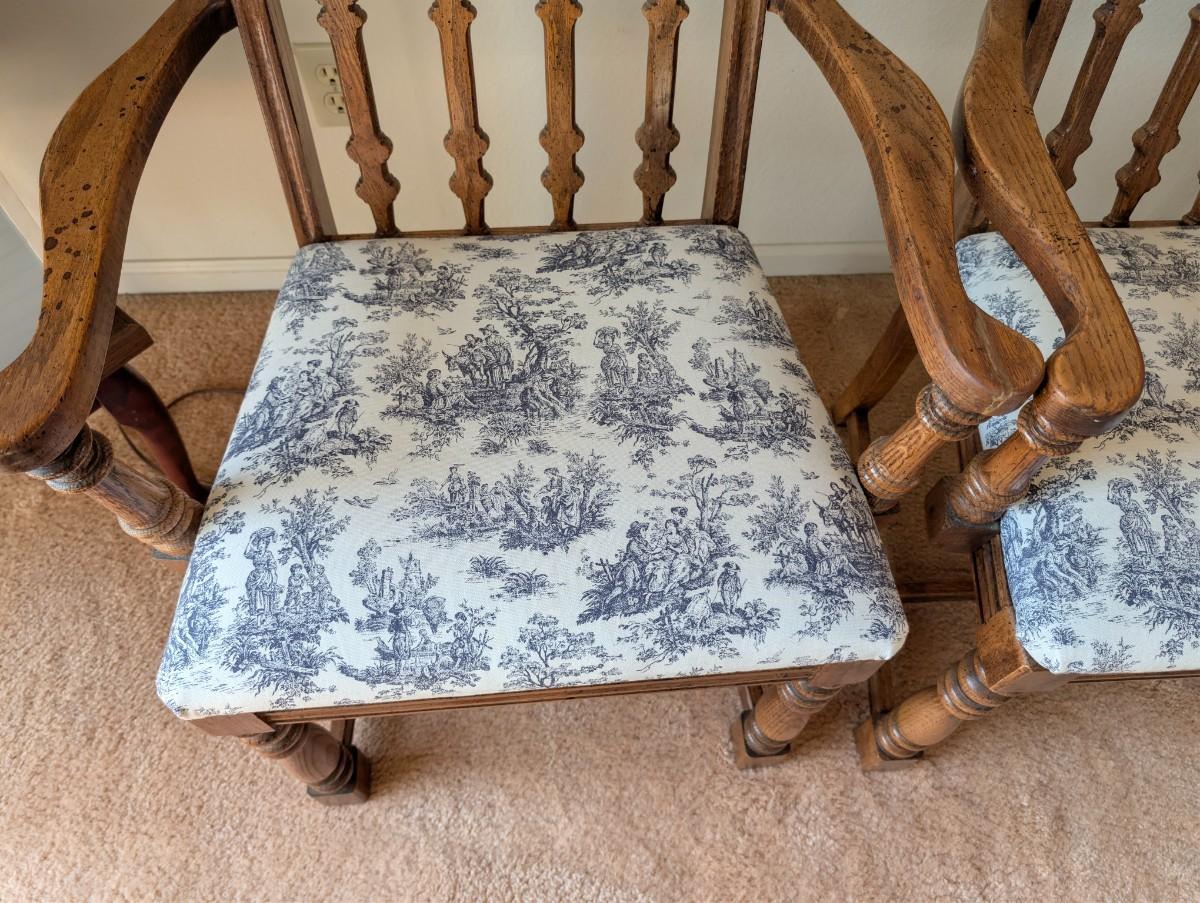 Vintage Country Style Pressed Back Solid Oak Dining Chairs w/ upholstered Cushions