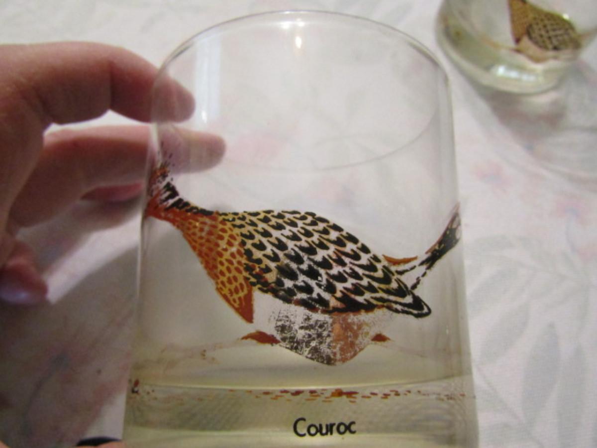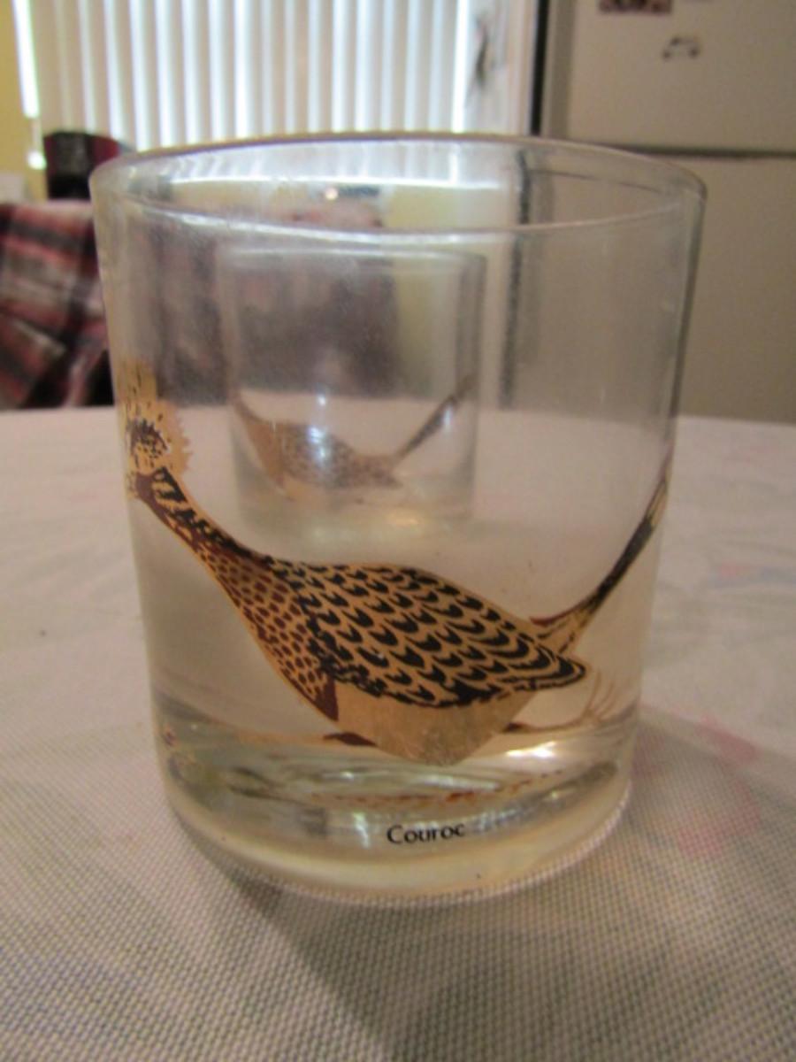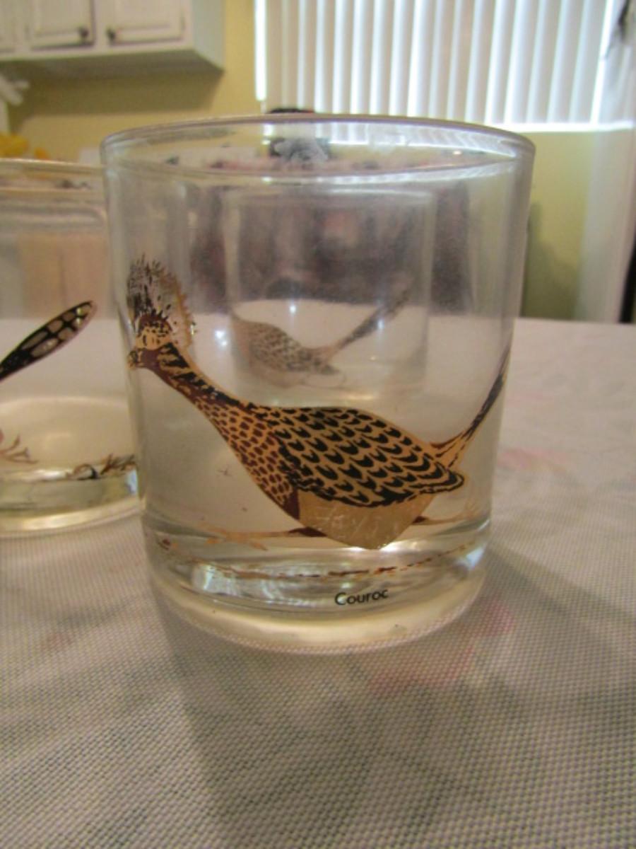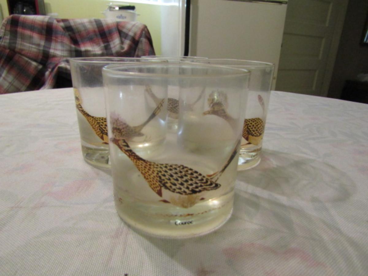 Vintage Couroc Low Ball Glasses- Roadrunner Theme- Set of Four. Please see all pictures- design is worn/light in some areas.