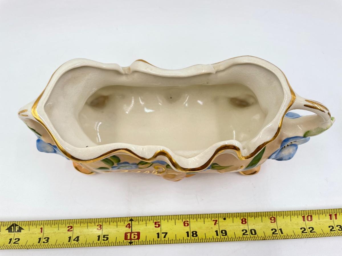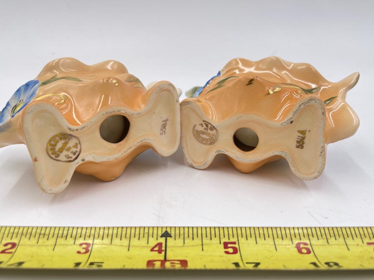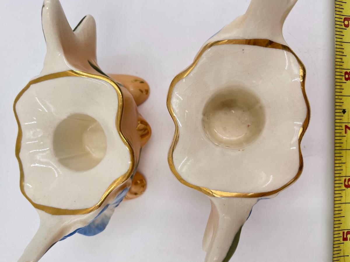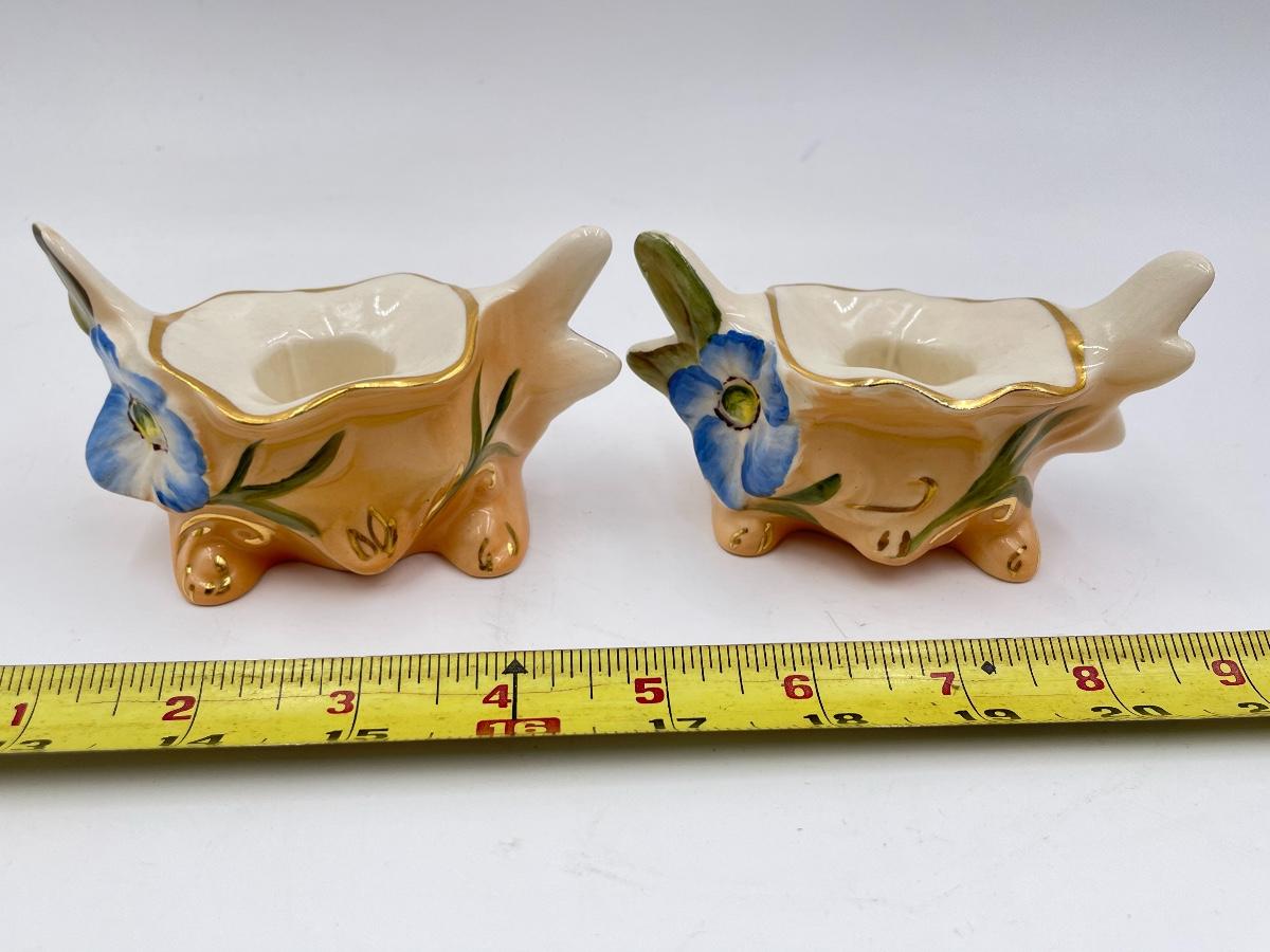 Large dish is approx 9” long. All three in great condition. Planter marked on bottom with 5510A and candlesticks marked with 5511A.