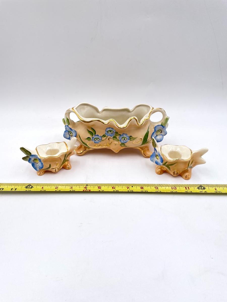 VINTAGE COVENTRY CERAMIC PLANTER/VASE AND CANDLESTICKS SET OF 3