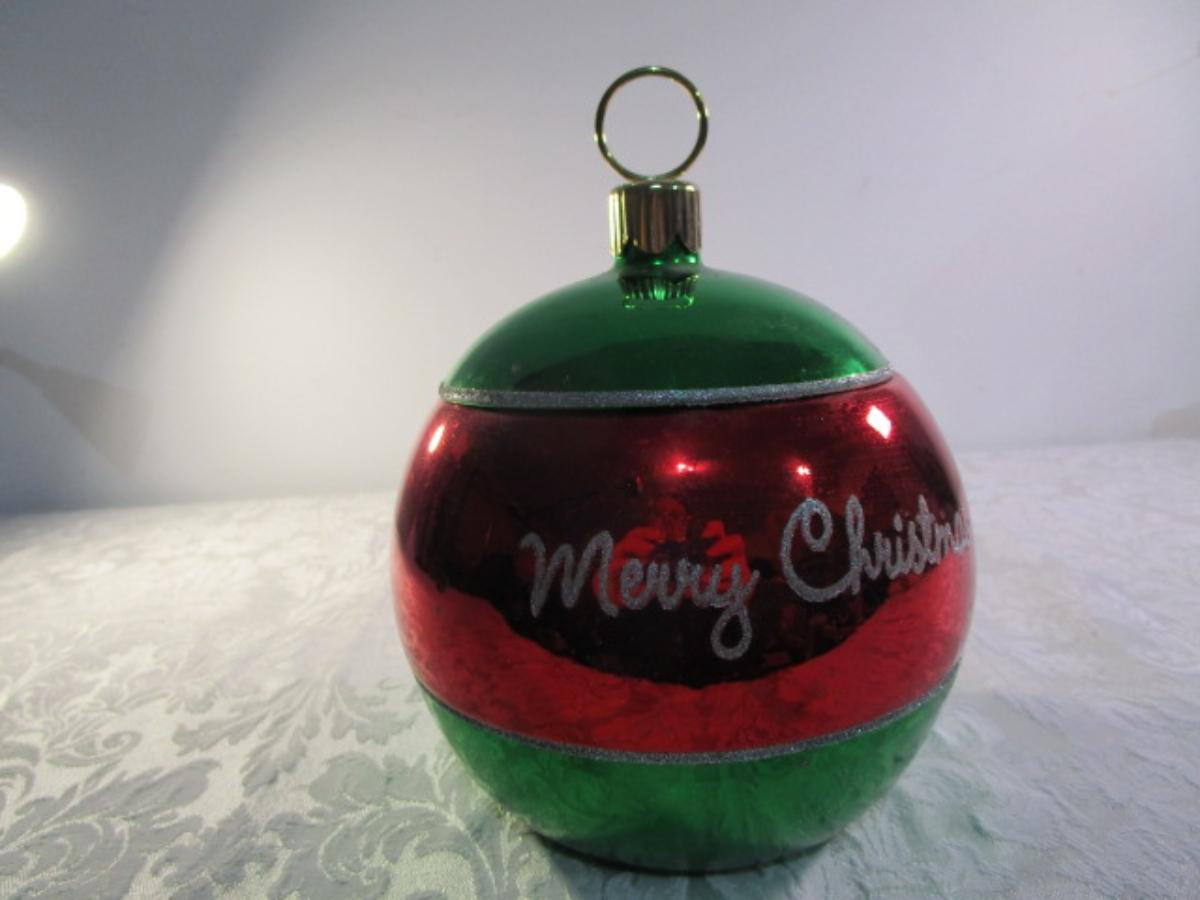 Vintage covered Christmas ornament cookie jar