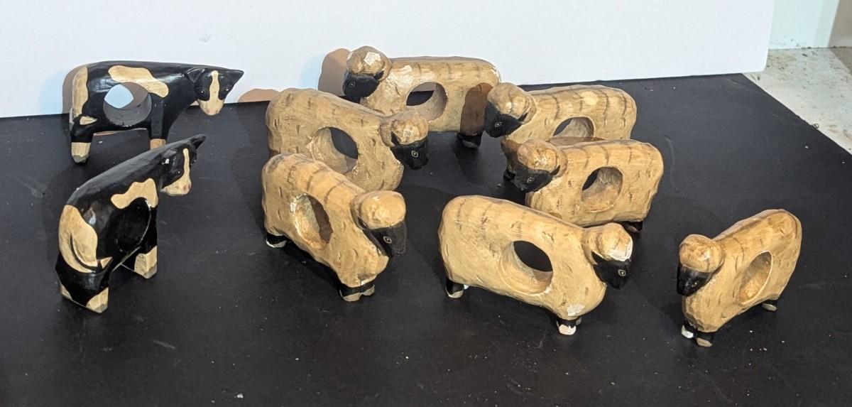 Vintage Cow & Sheep Hand Painted Napkin Holders