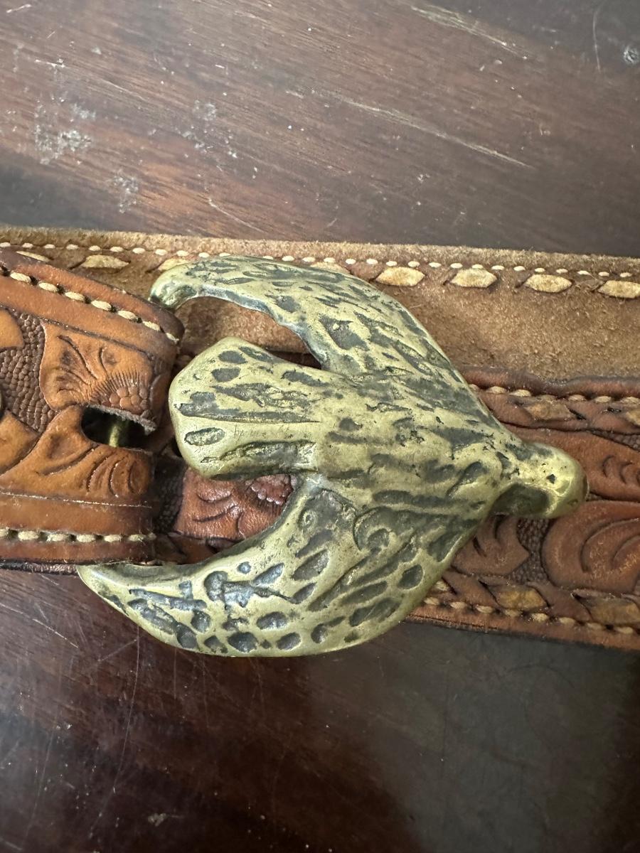 VINTAGE COWHIDE BELT WITH EAGLE BUCKLE SZ39