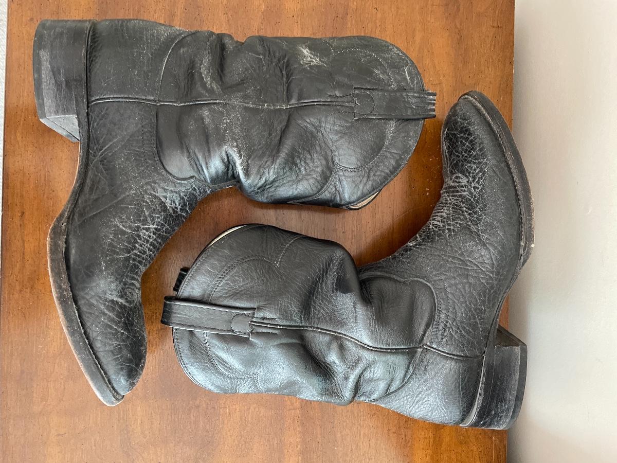 #101 Vintage COWTOWN Handmade Black Leather Cowboy Boots Sz 10 1/2 Mexico