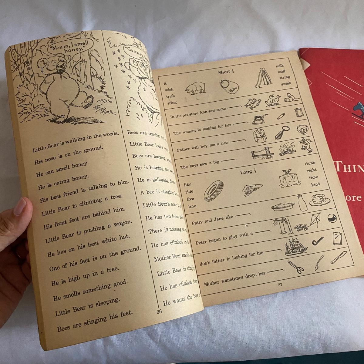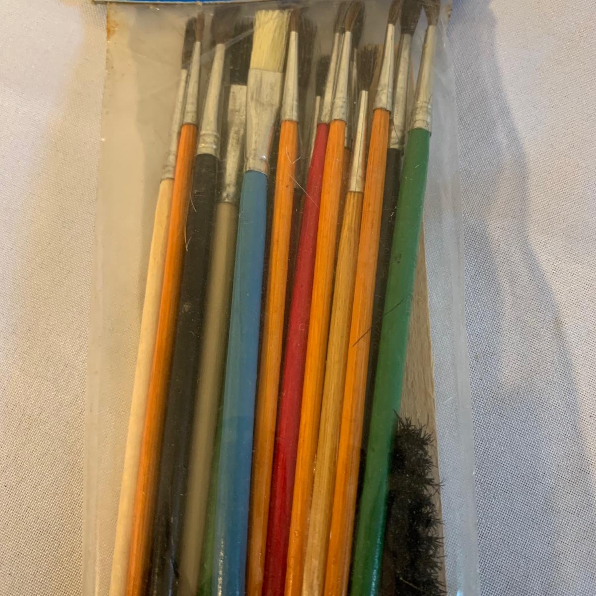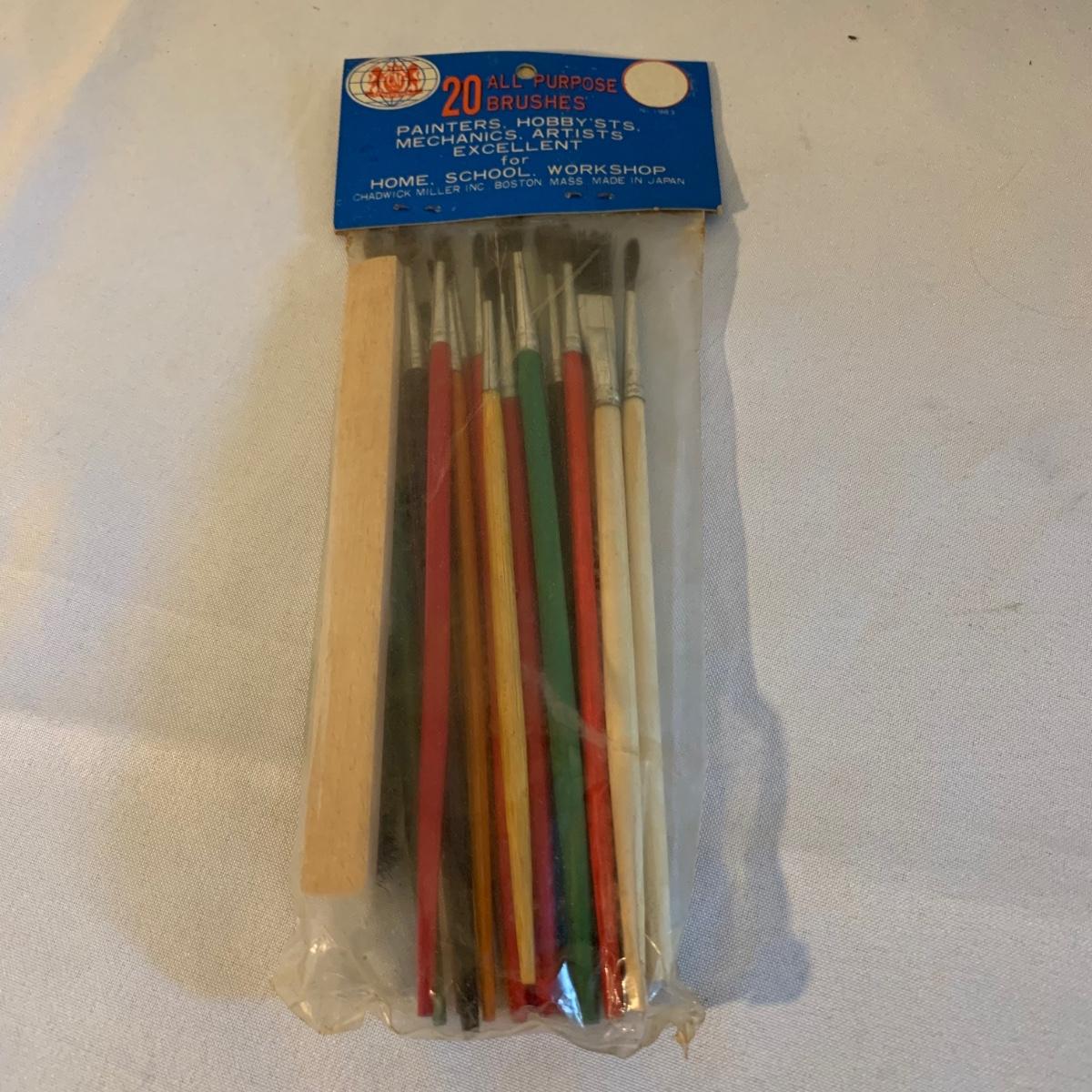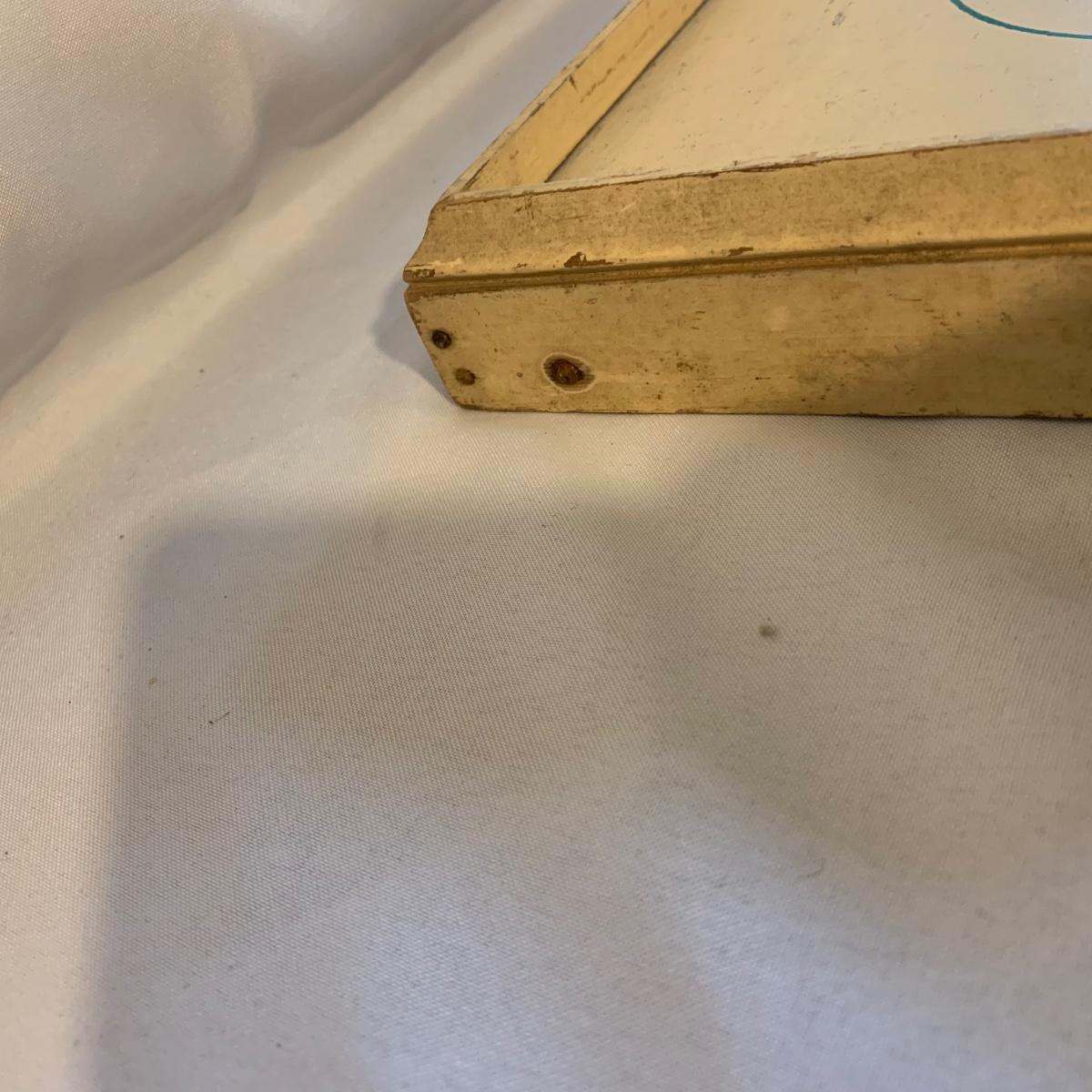 This lot includes vintage tools and supplies for different crafts and art. A drawing desk, a calligraphy set, paint brushes, stamps, coloring books, and more are included. Conditions for pieces in this lot range from fair to good with some items having marks and wear. The desk measures about 15in x 21in when folded. Shipping available.