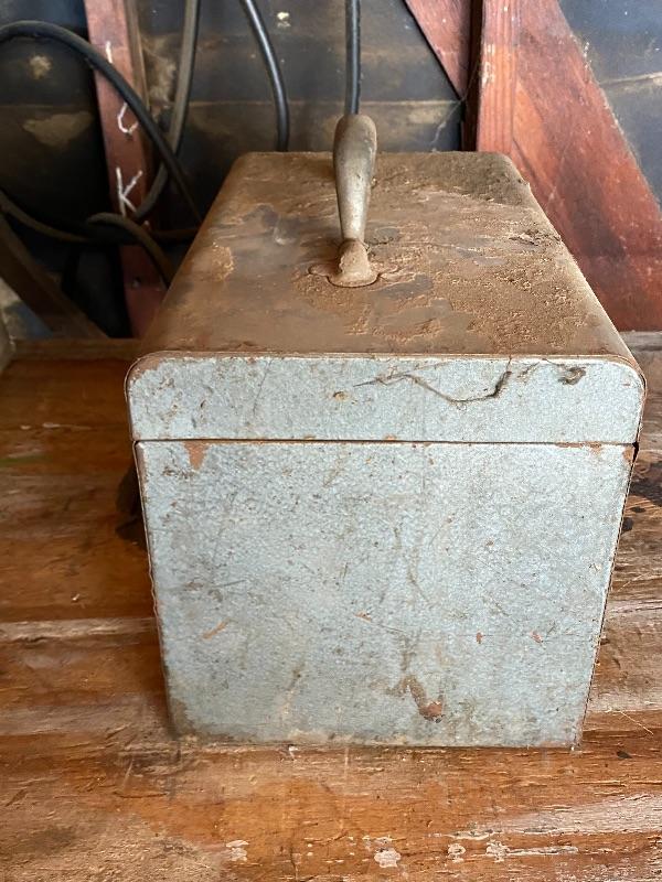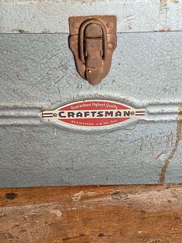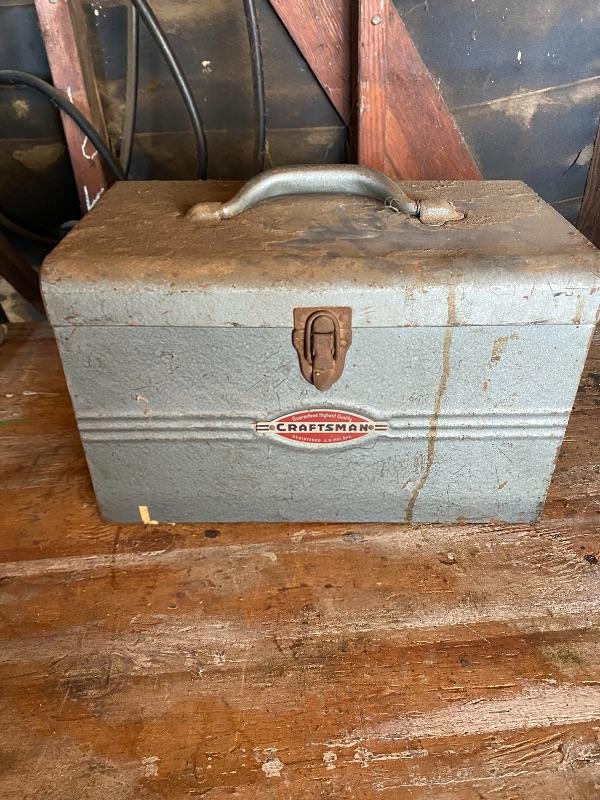 Vintage Craftsman metal box. May have been for an electric drill or sander. Auction is for the box only. No power tool was inside. In fair used condition. Dirty and minor signs of wear from use and being in garage.