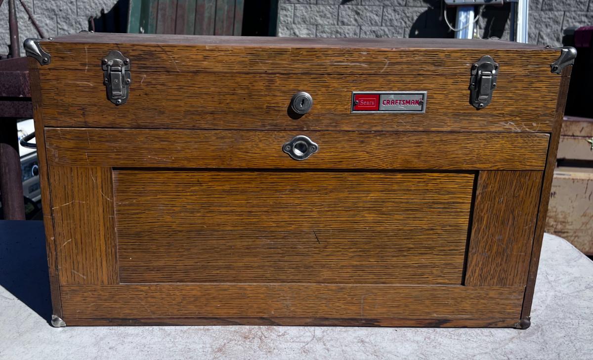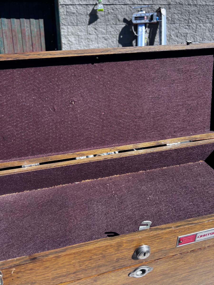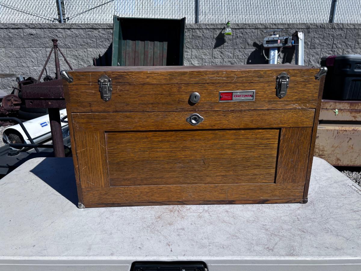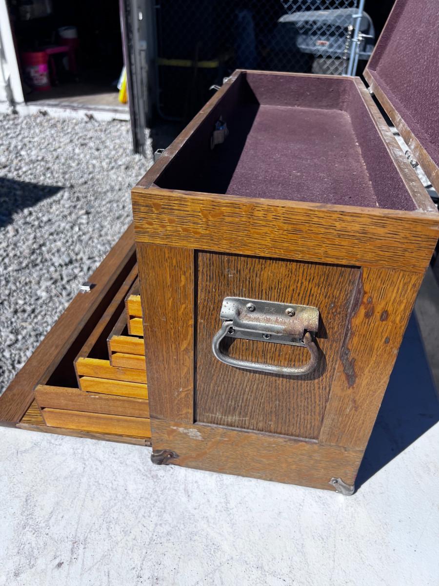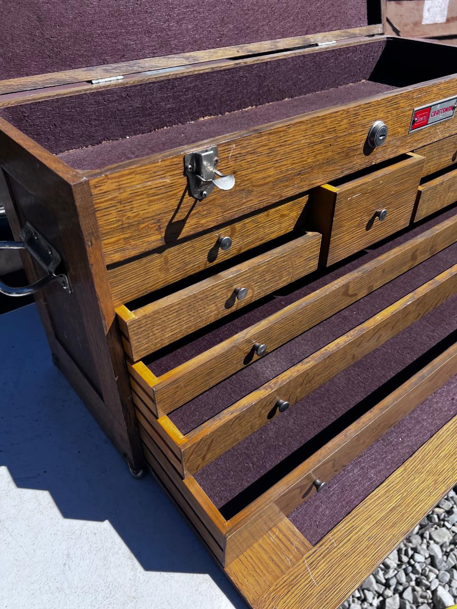 Vintage Craftsman Wood Machinists Tool Box. Very good condition all there 26x10x12. Solid Oak! no key.