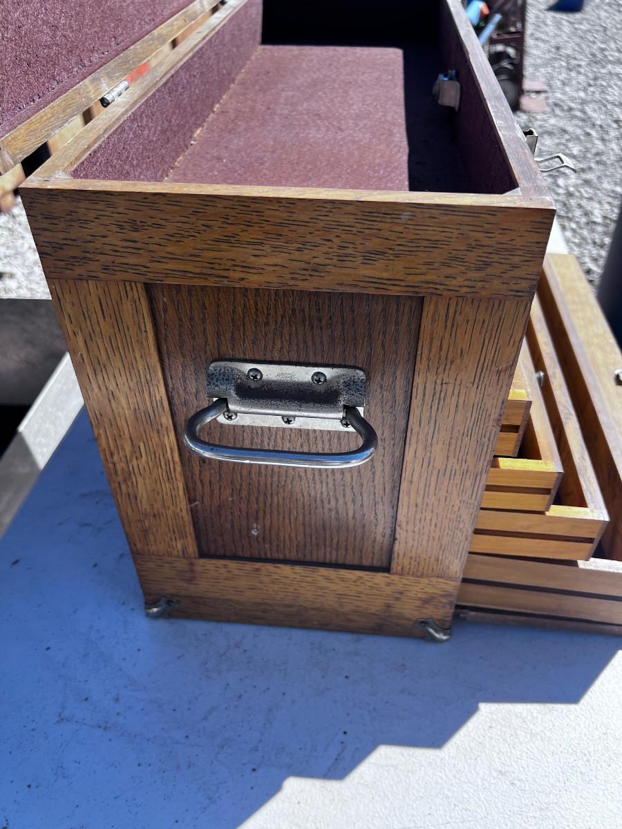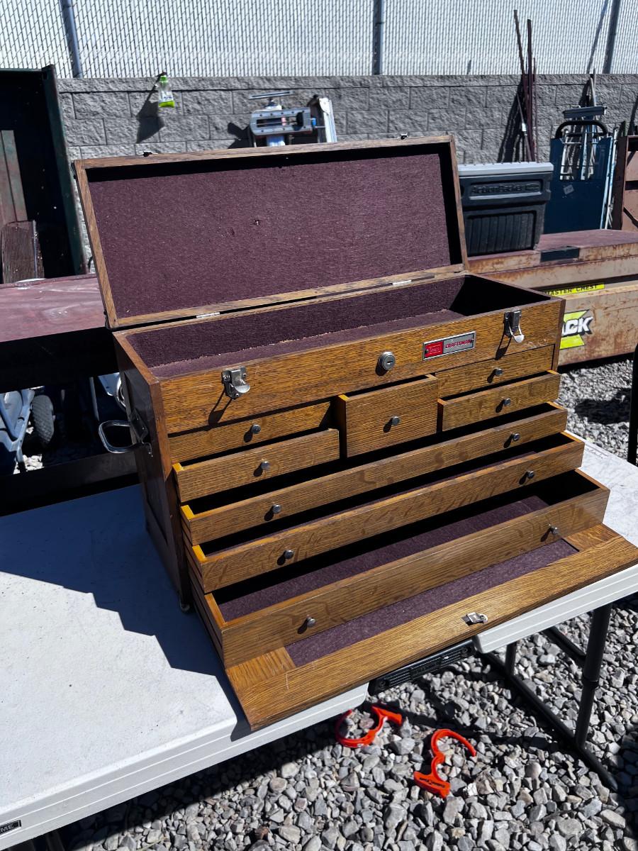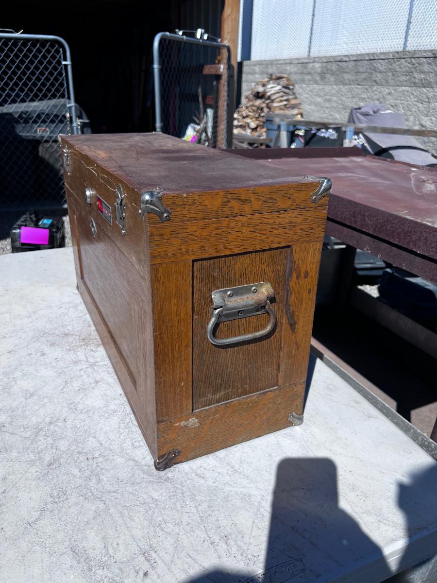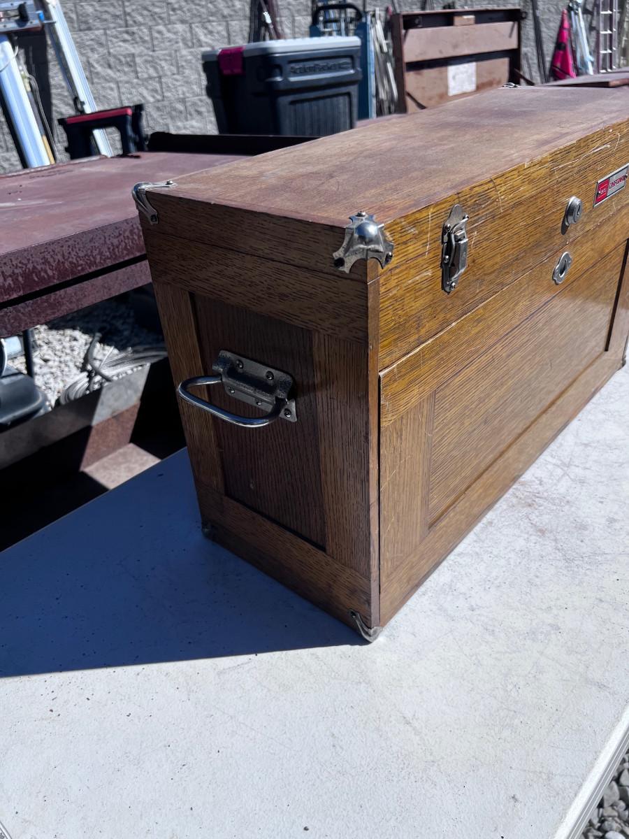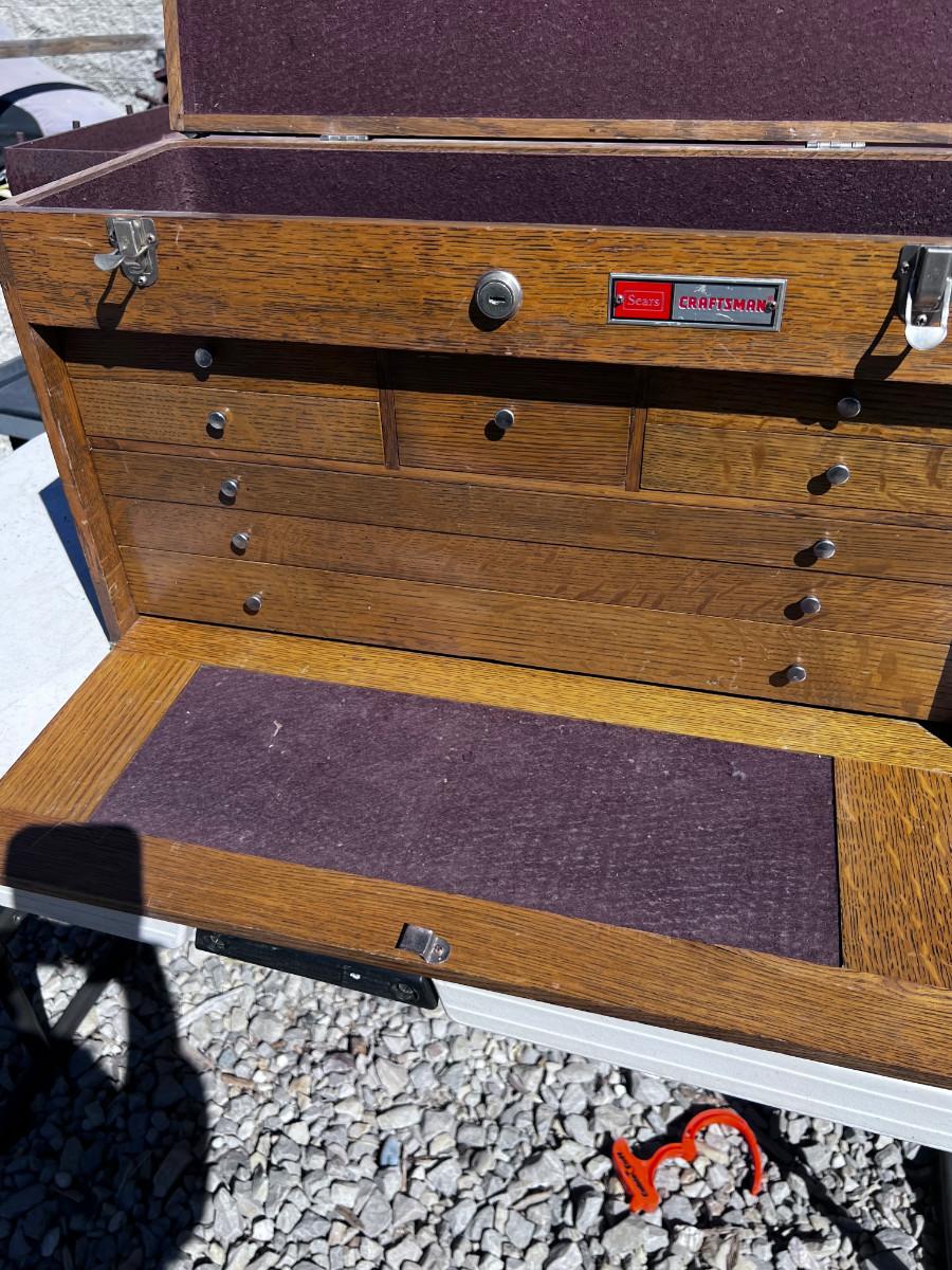 Vintage Craftsman Wood Machinists Tool Box. Very good condition all there 26x10x12. Solid Oak! no key.