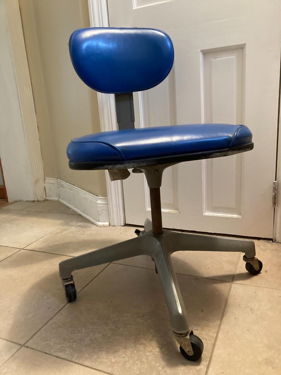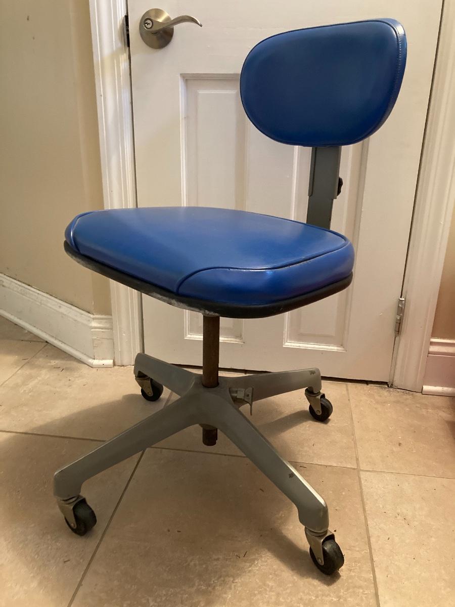 Vintage Cramer Industries Swivel Office Chair Blue Vinyl