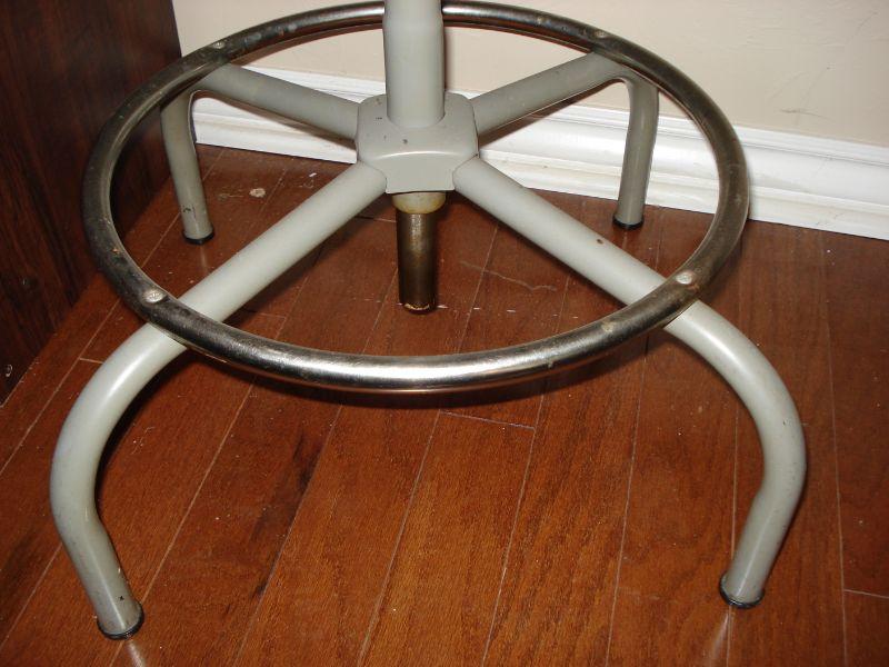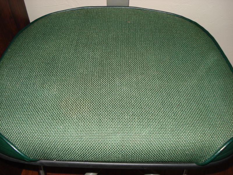 Vintage green CRAMER Mid Century Industrial Office Swivel Desk Chair Stool . Fiber board 2 drawer file cabinet.