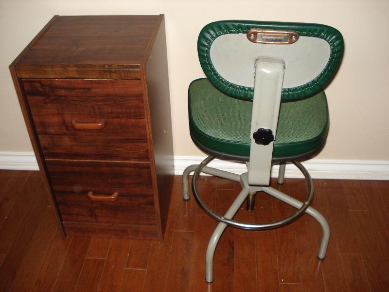 Vintage CRAMER Mid Century Swivel Chair Stool & 2 drawer file cabinet
