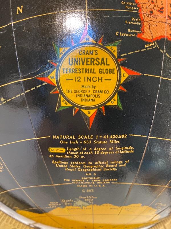 Vintage Cram’s Universal Terrestrial Globe 12”