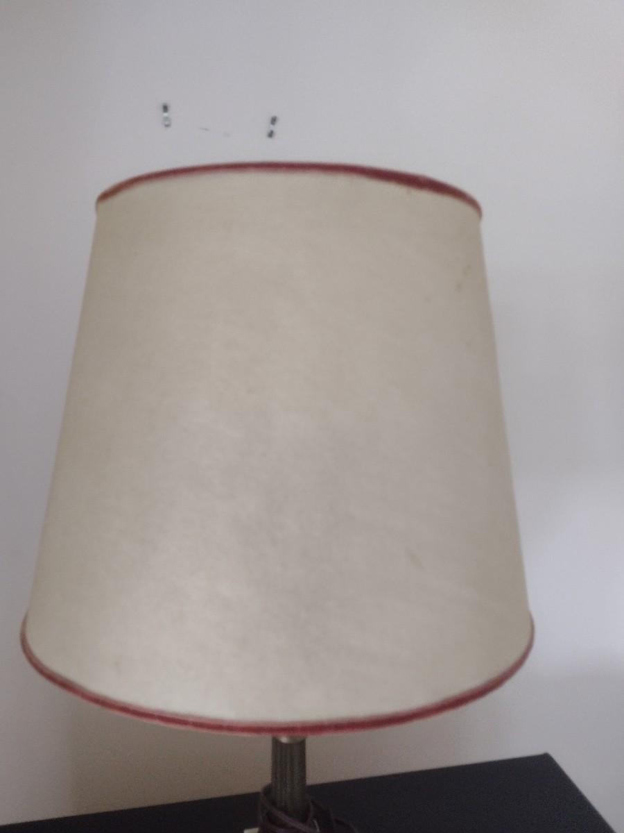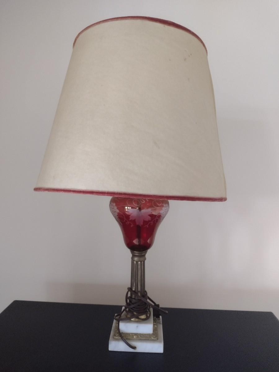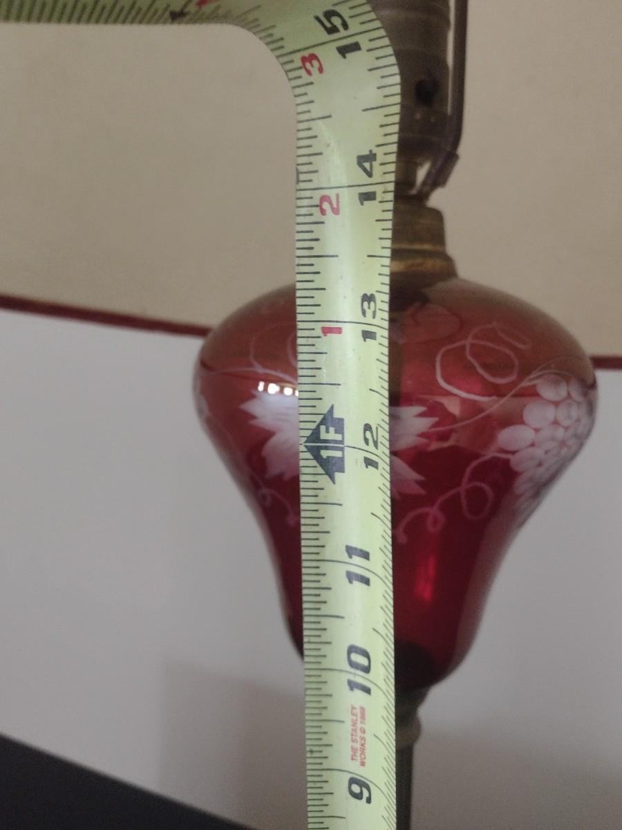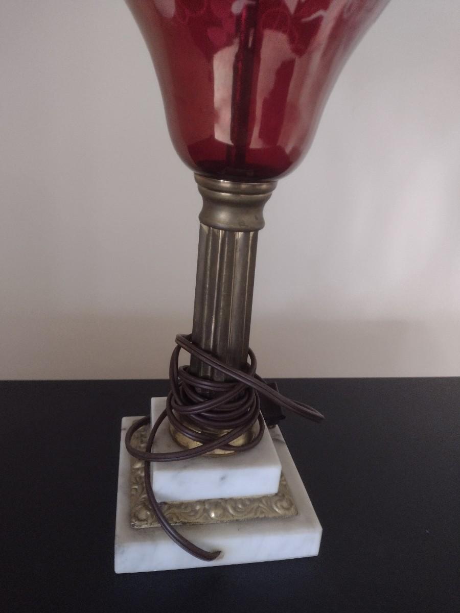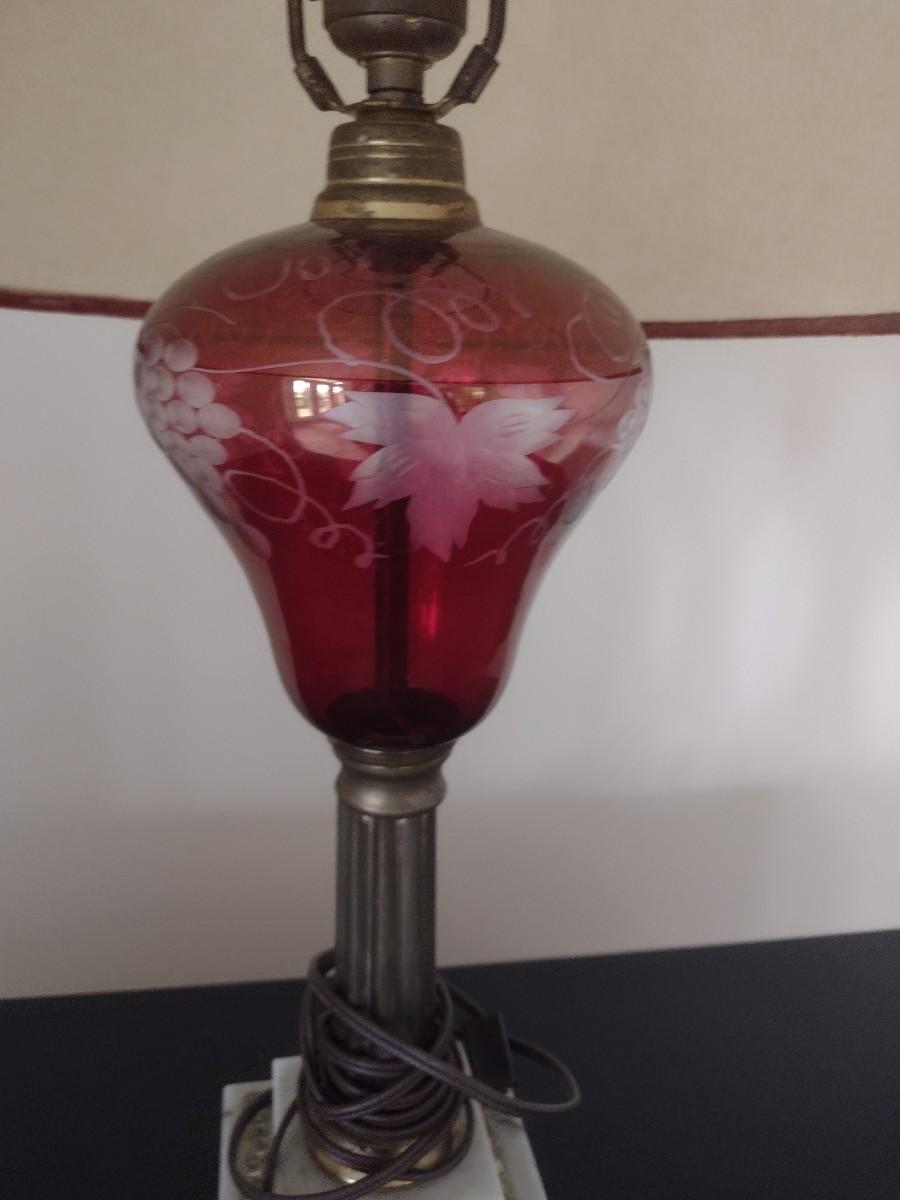 Vintage Cranberry Etched Glass with Marble Base Table Lamp