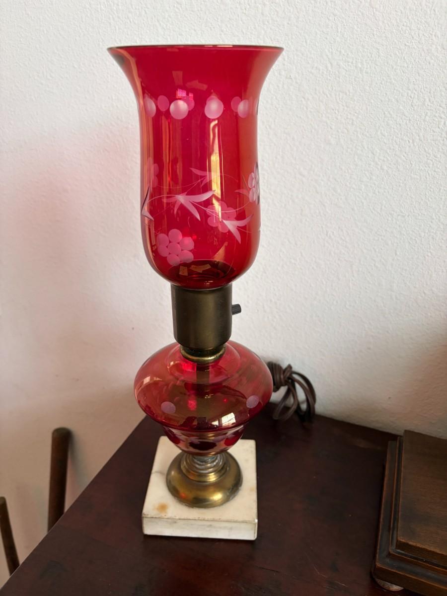 Vintage cranberry glass hurricane lamp
