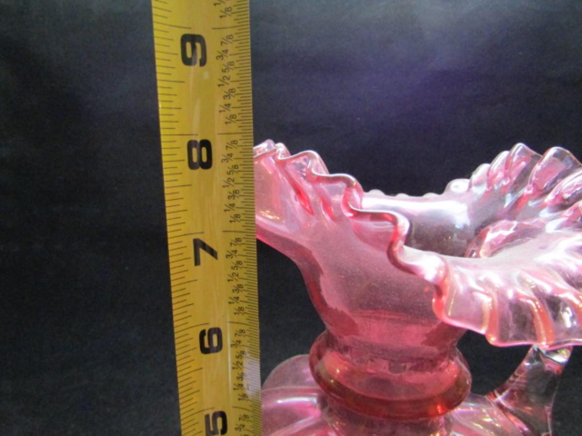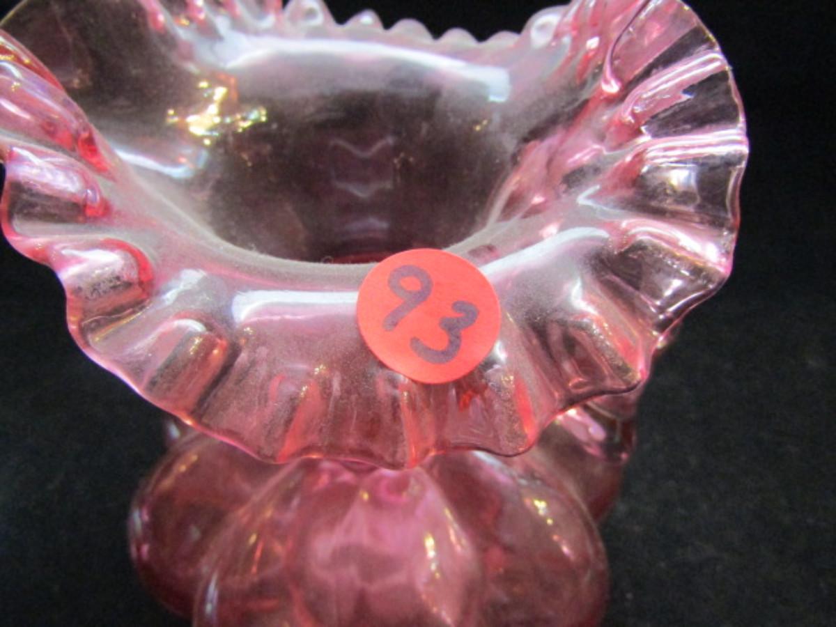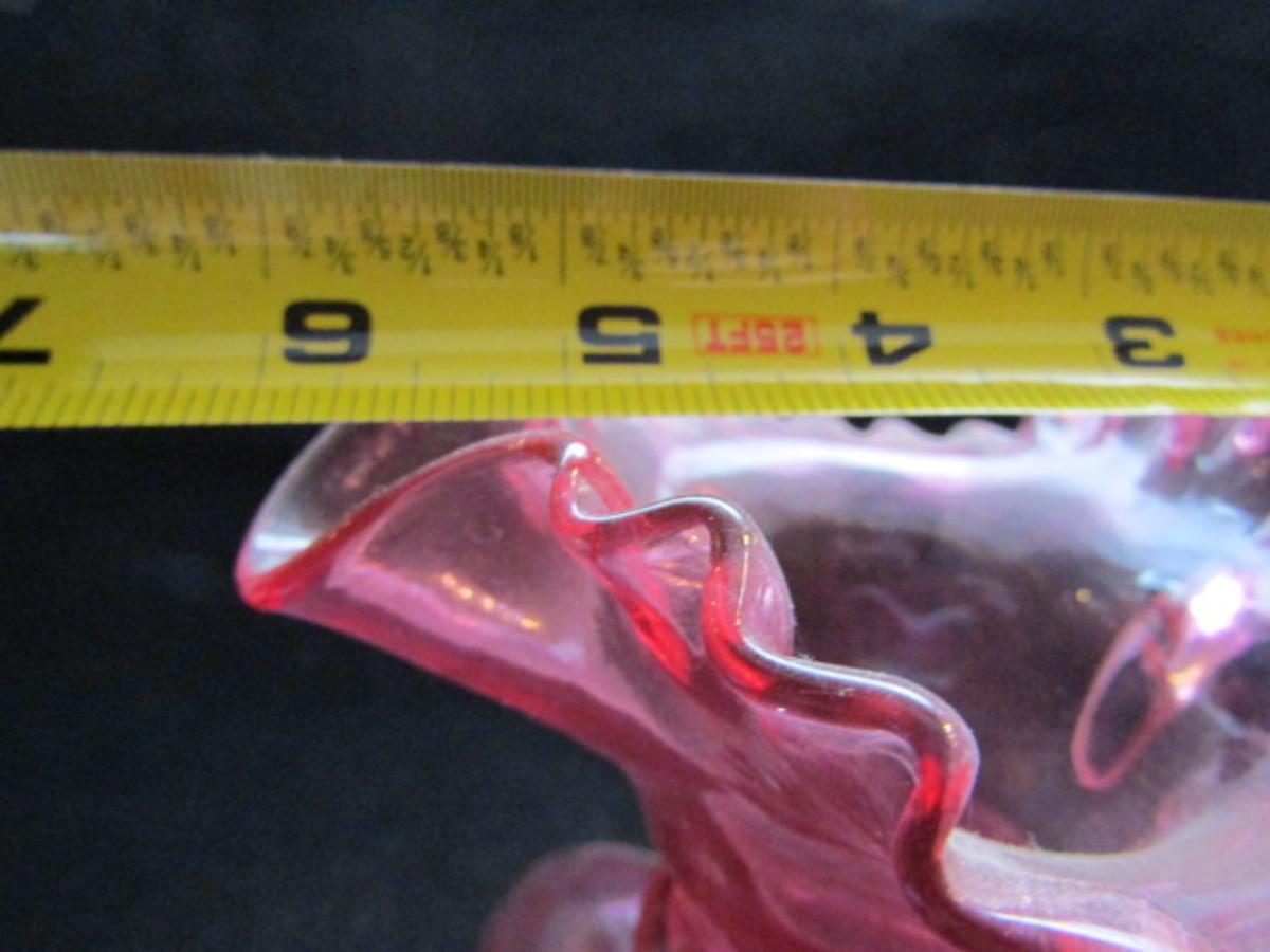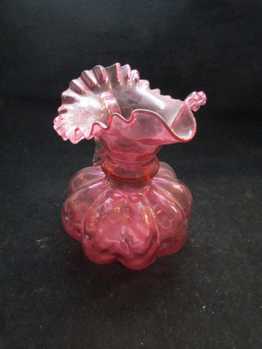 Vintage Cranberry Glass Onion Shaped Vase with Ruffled Top-  (#93)