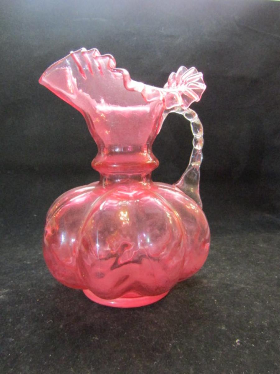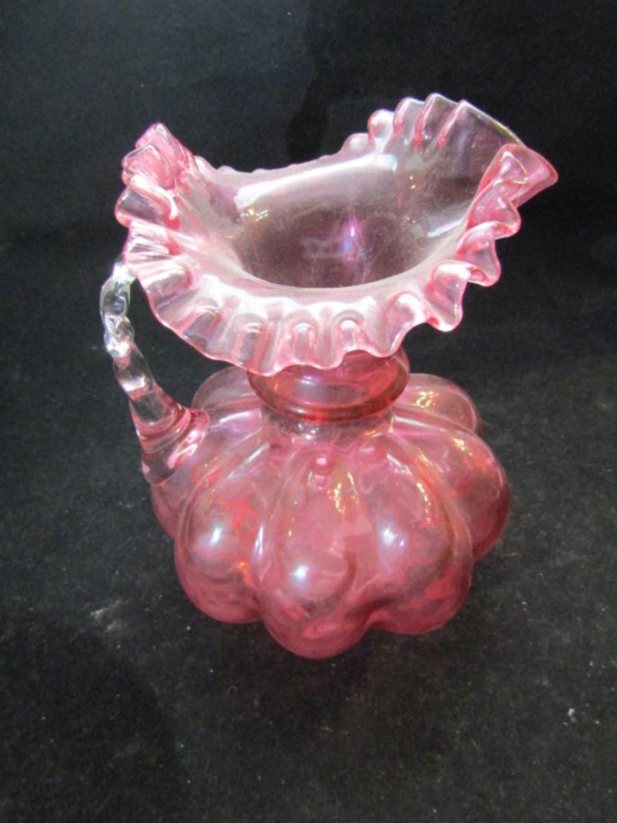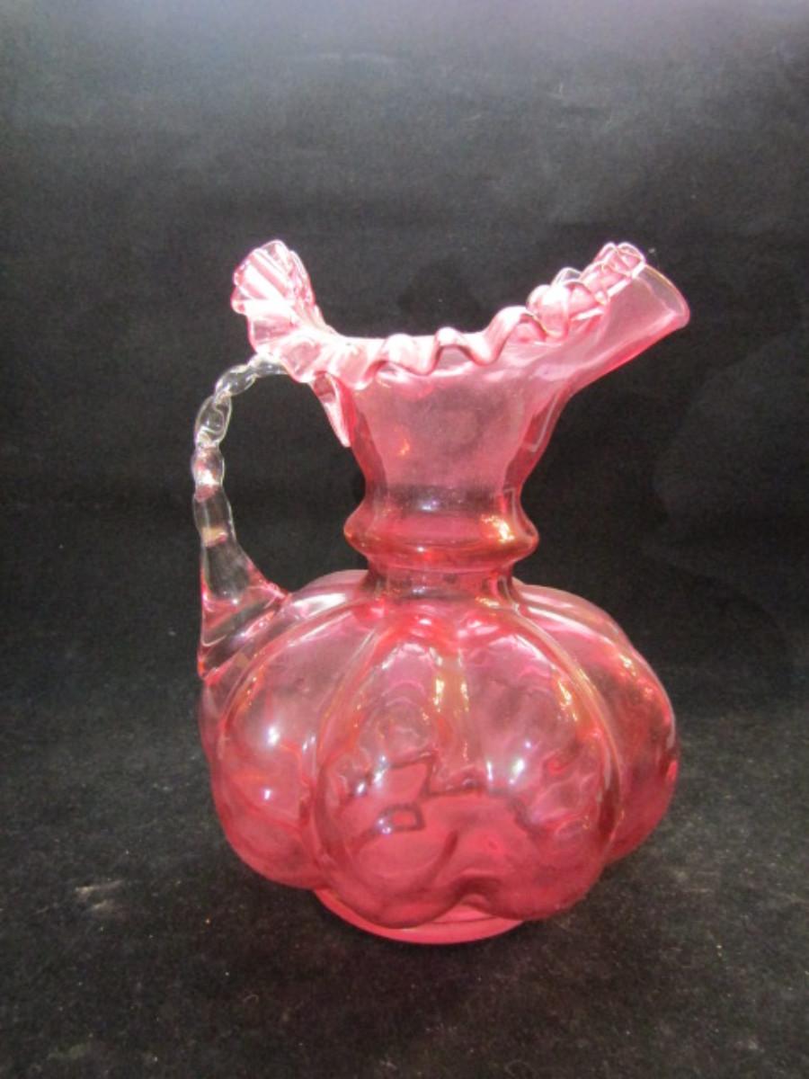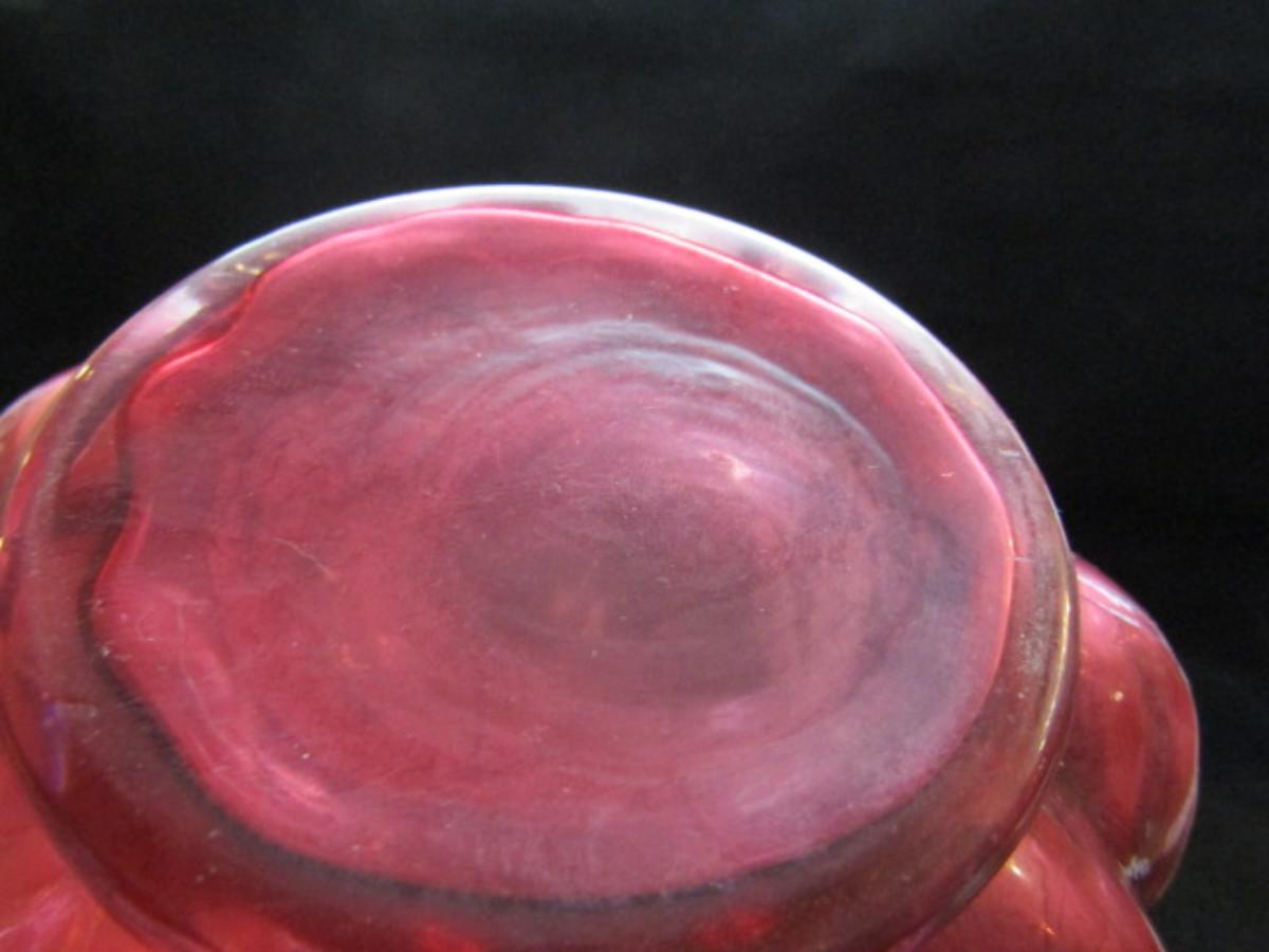 Vintage Cranberry Glass Onion Shaped Vase with Ruffled Top- (#93)