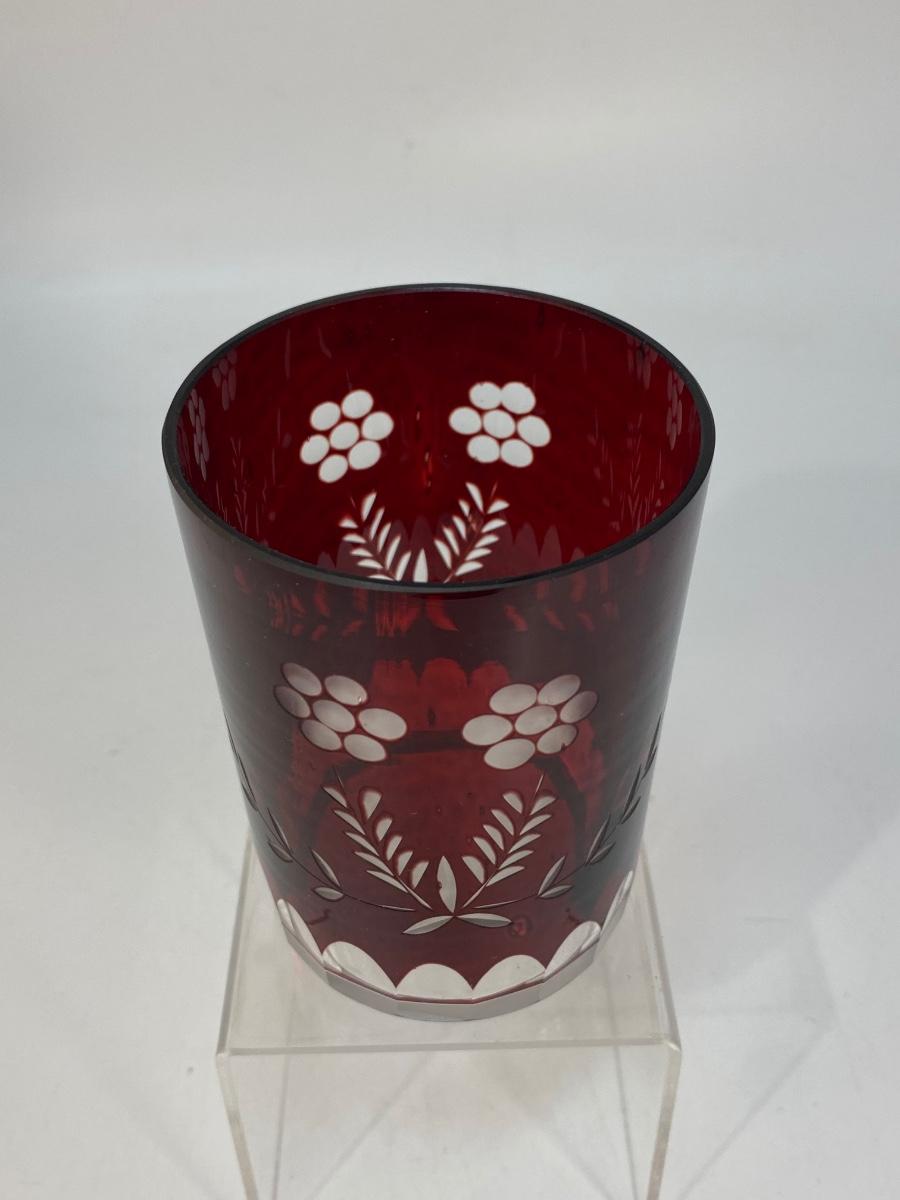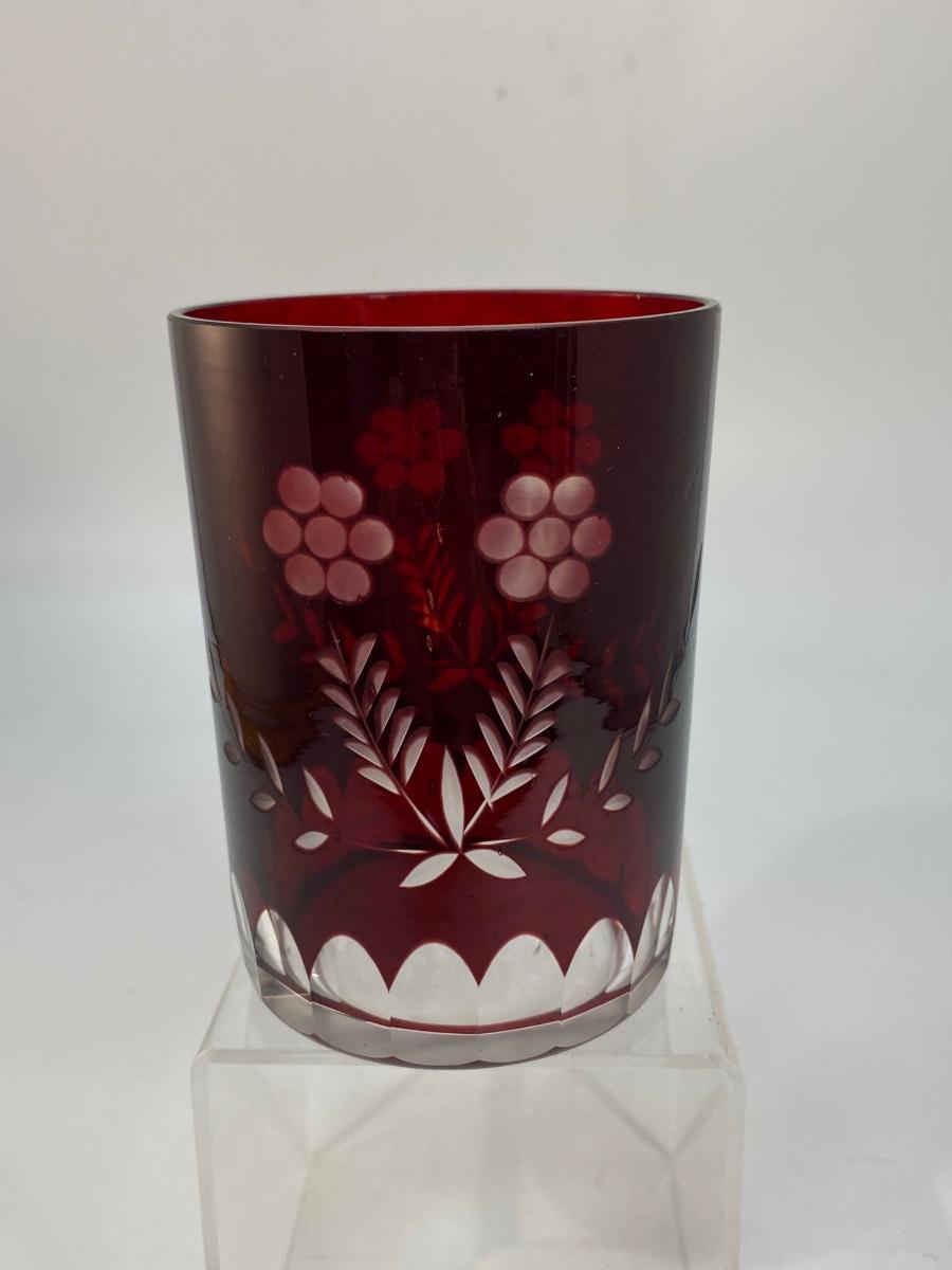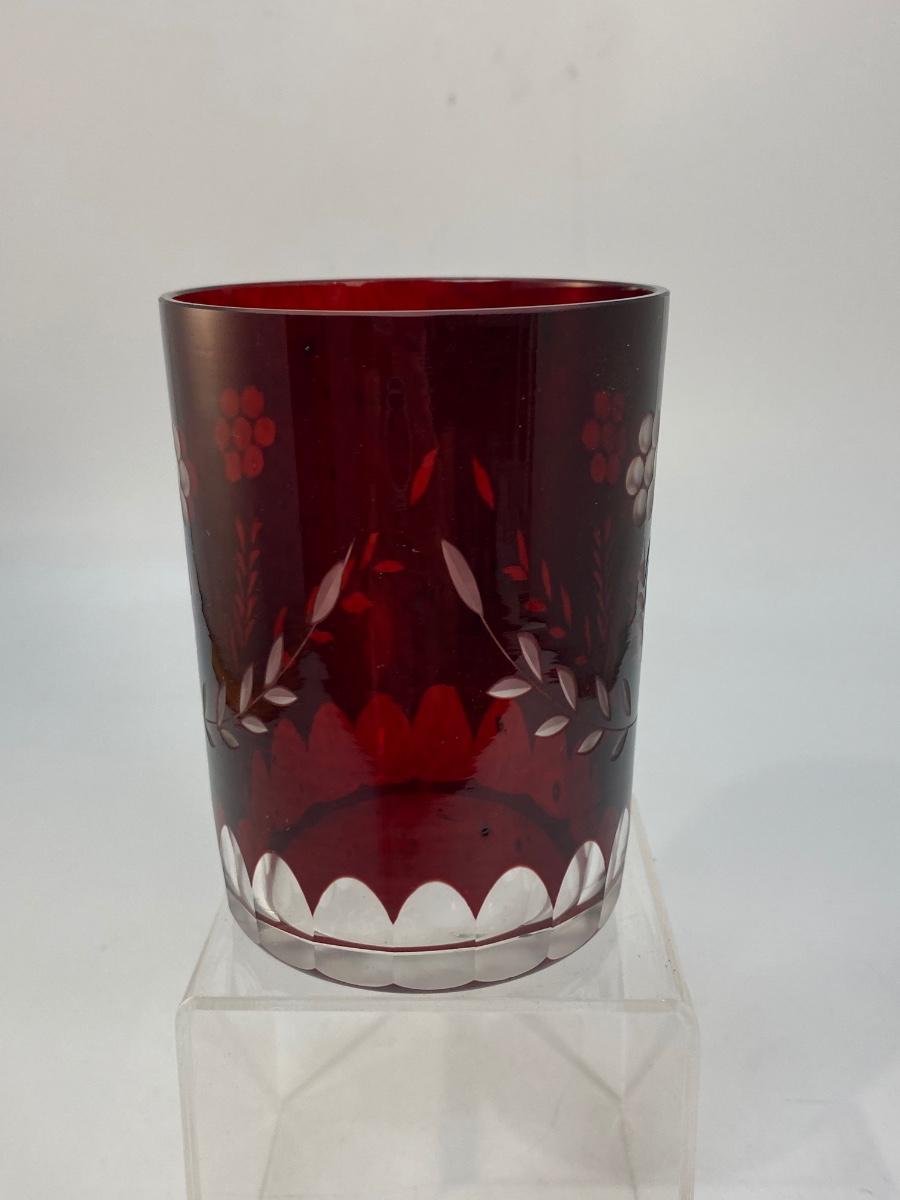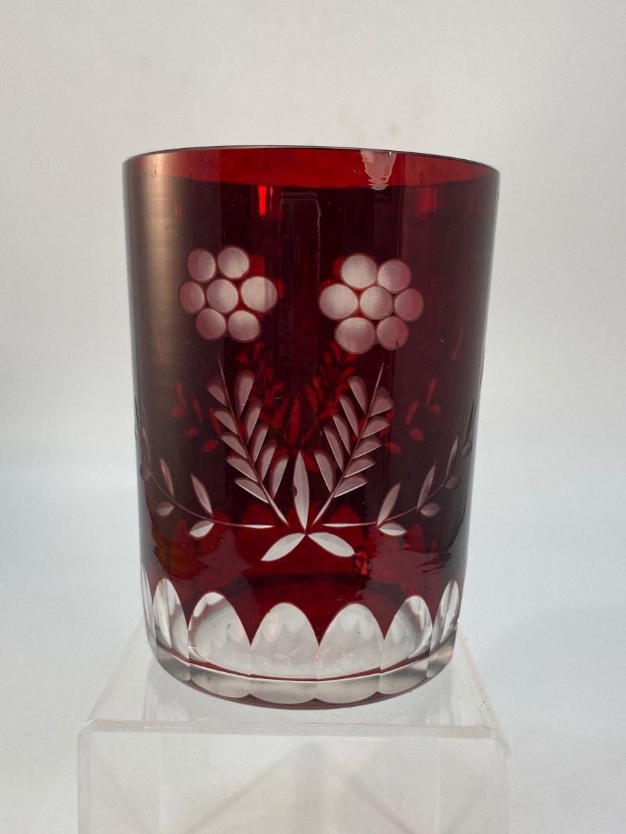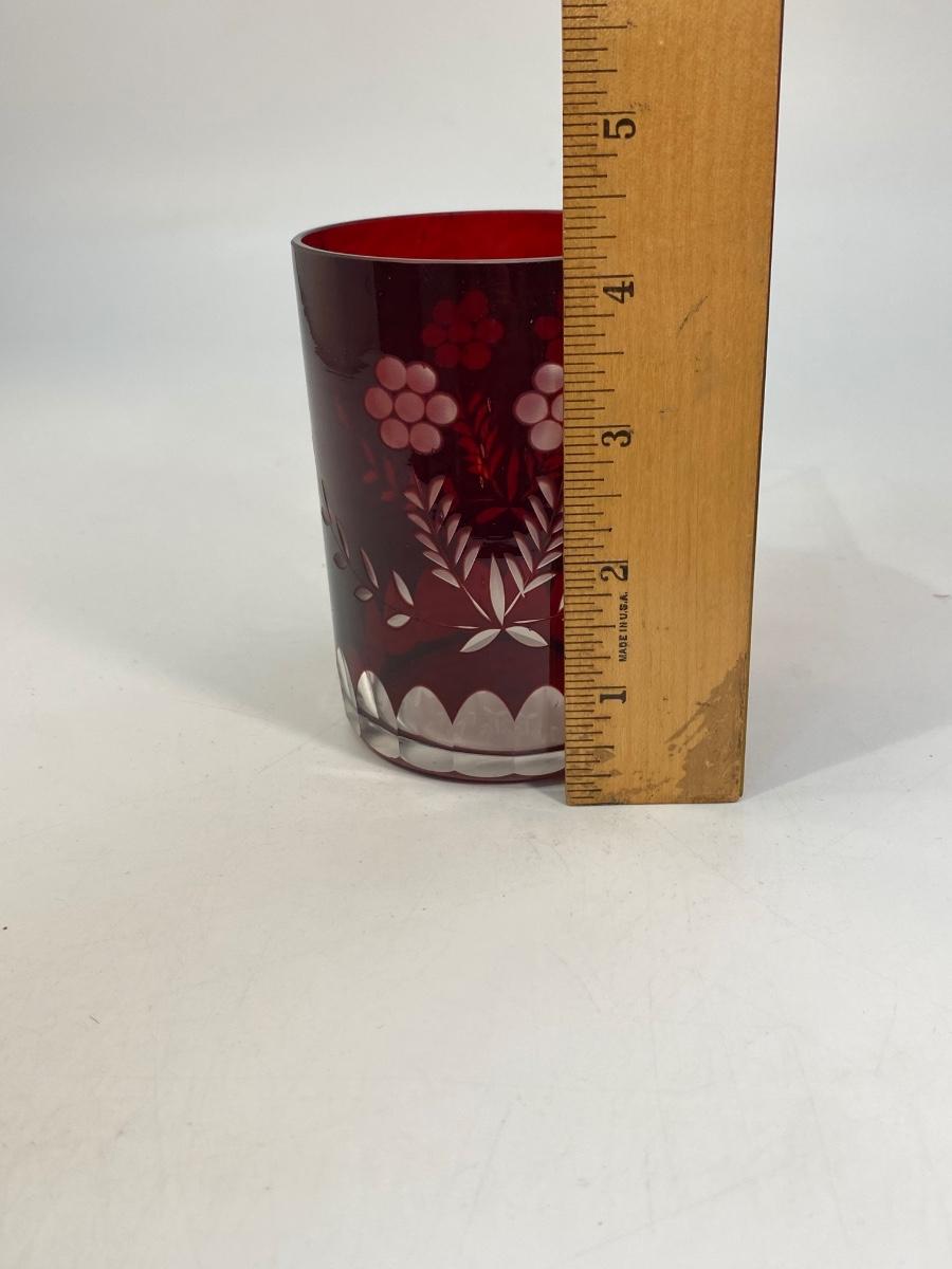 Vintage Cranberry Ruby Red Cut to Clear Flower Pattern Drink Glass