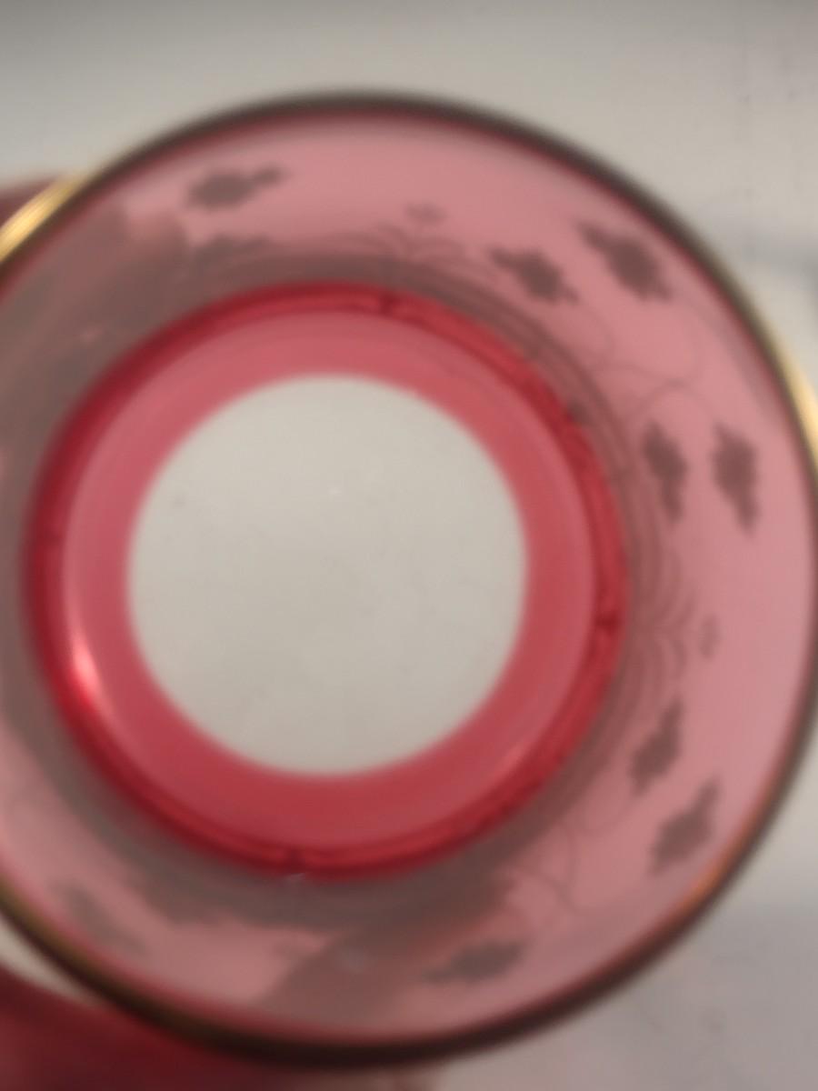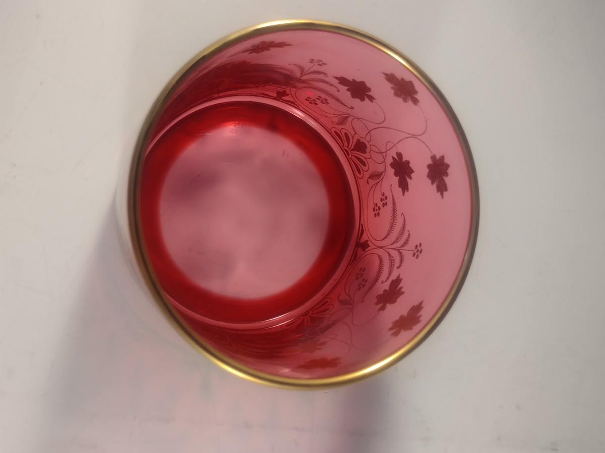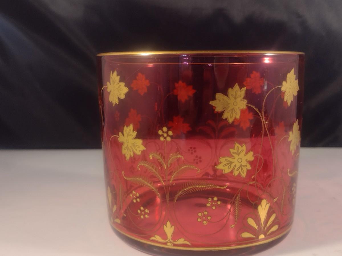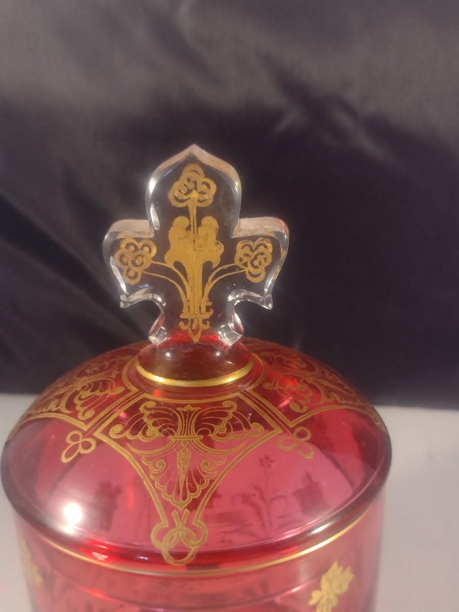 Vintage Cranberry with Gilded Design Moser Style Bohemian Lidded Glass Dish