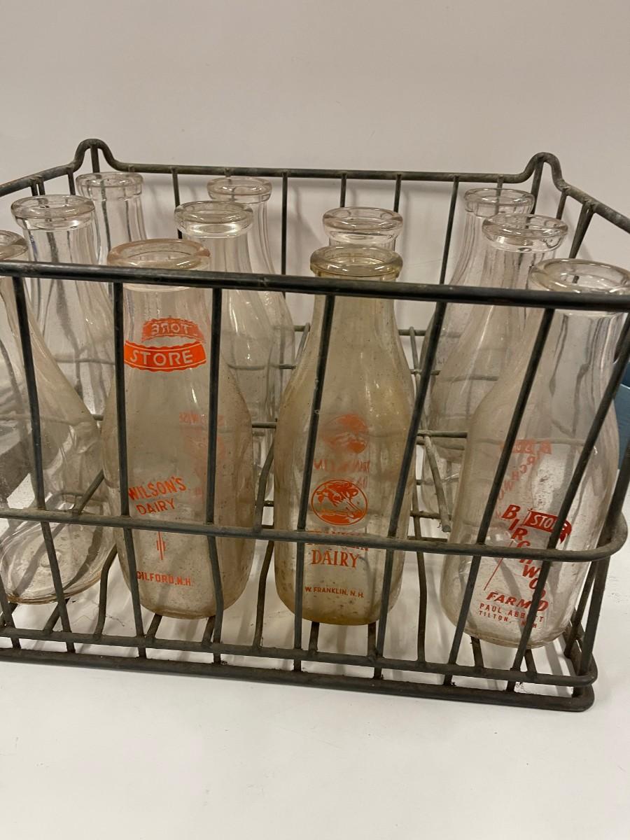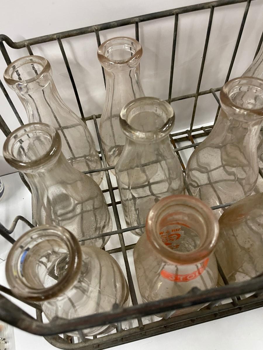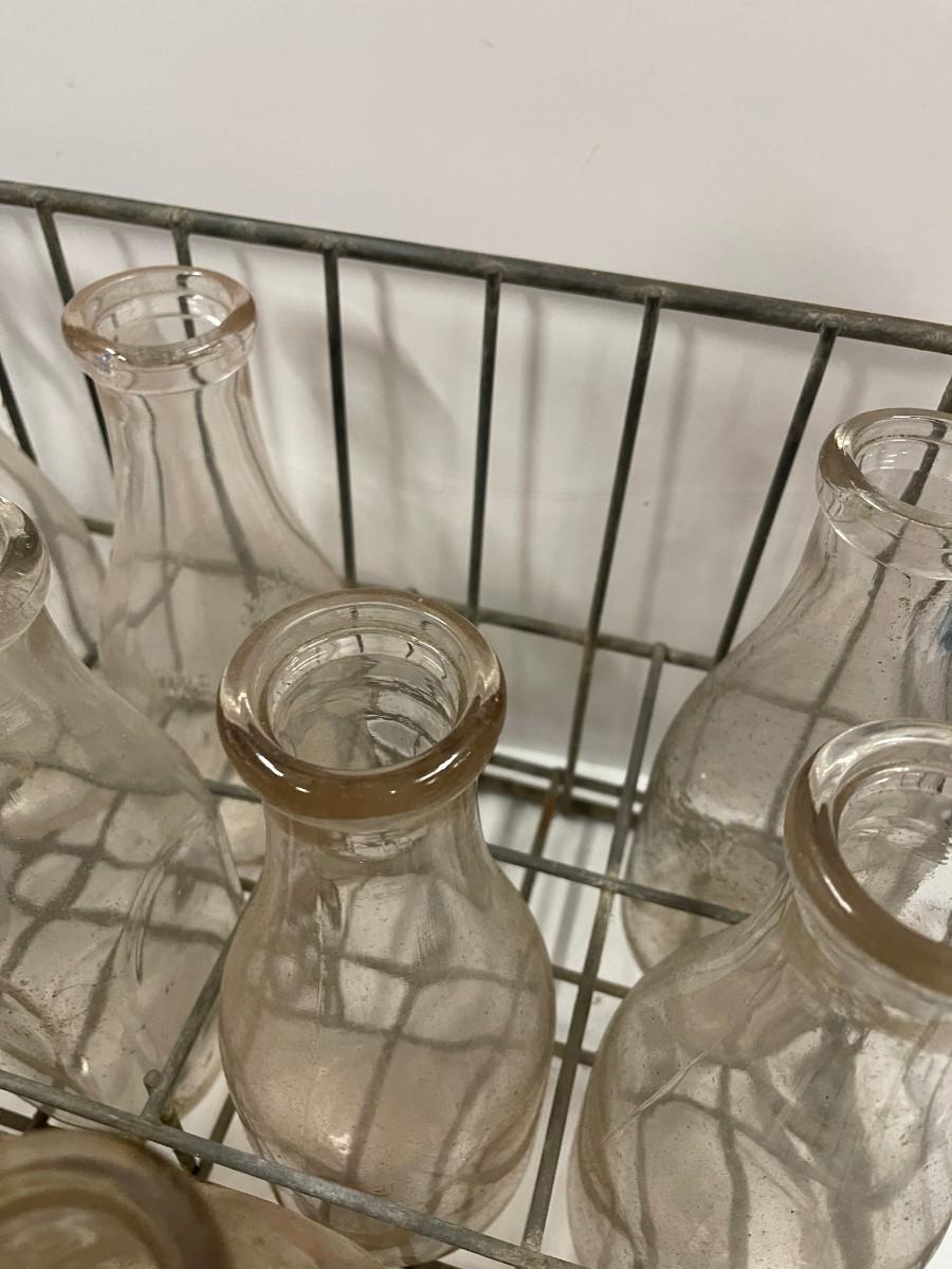 Vintage Crate of Glass Milk Bottles