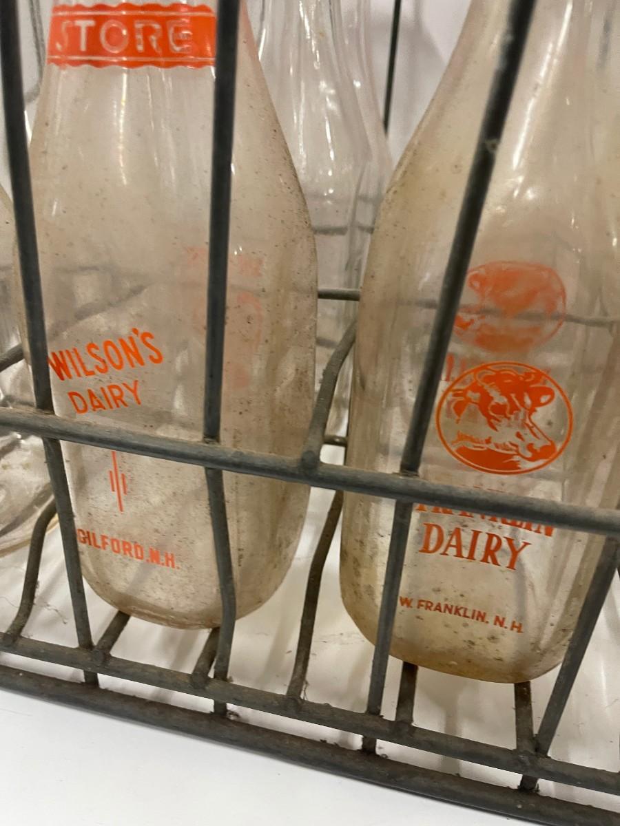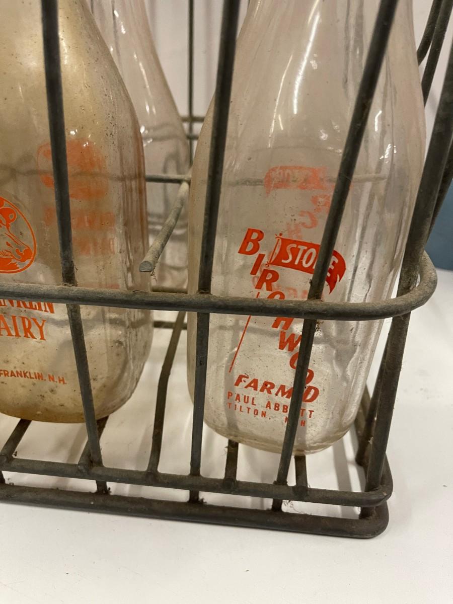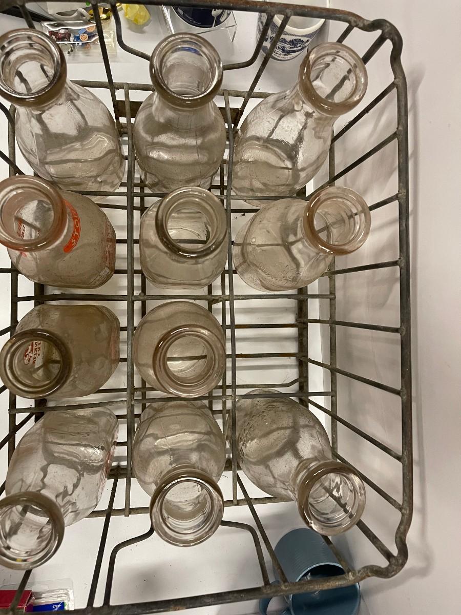 Vintage Crate of Glass Milk Bottles