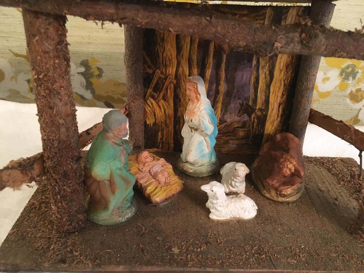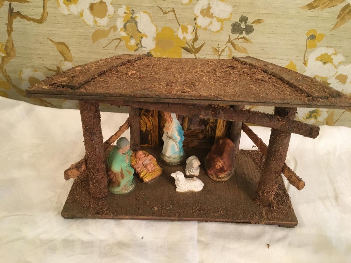 Vintage woods crèche with stationary figures