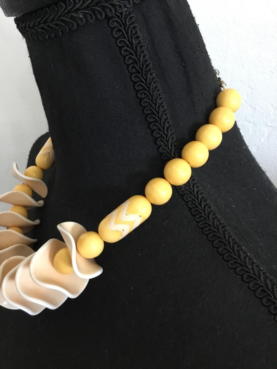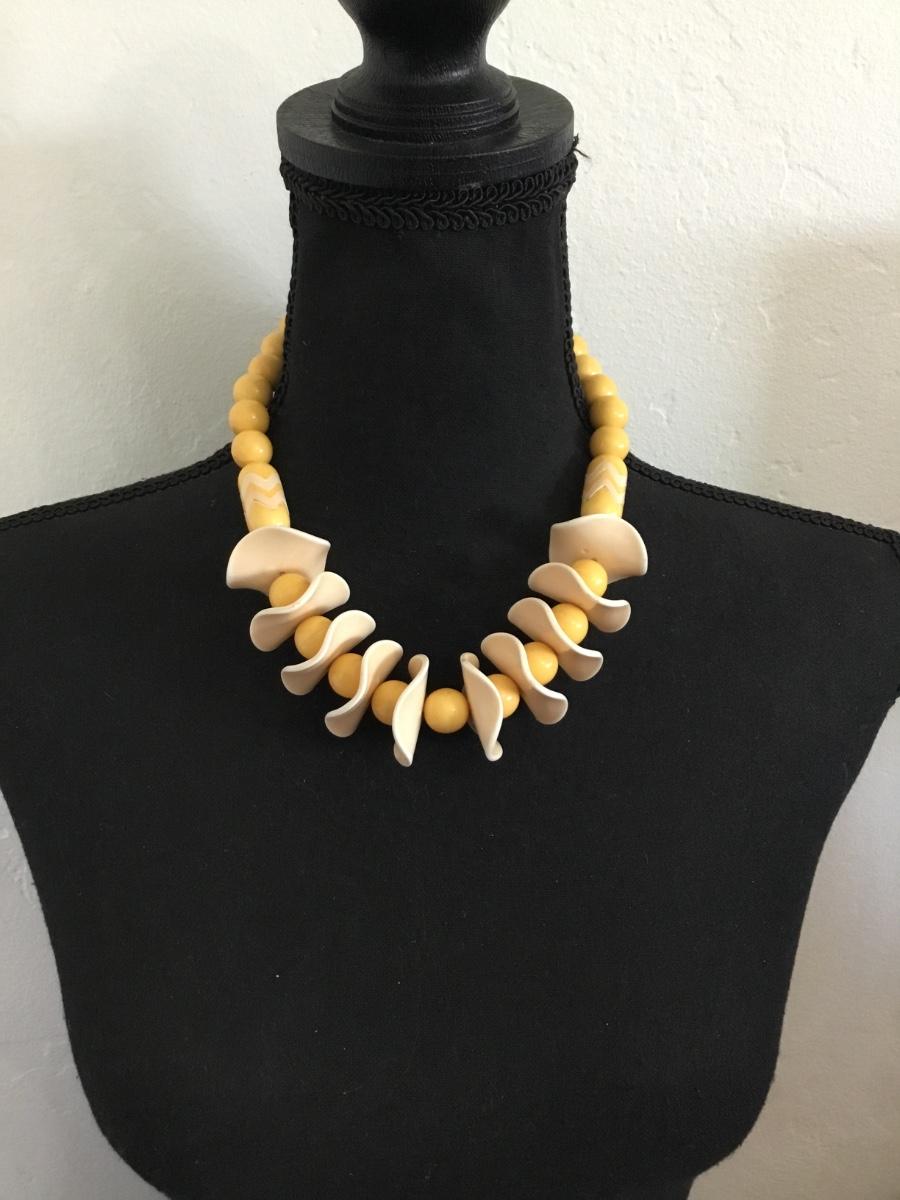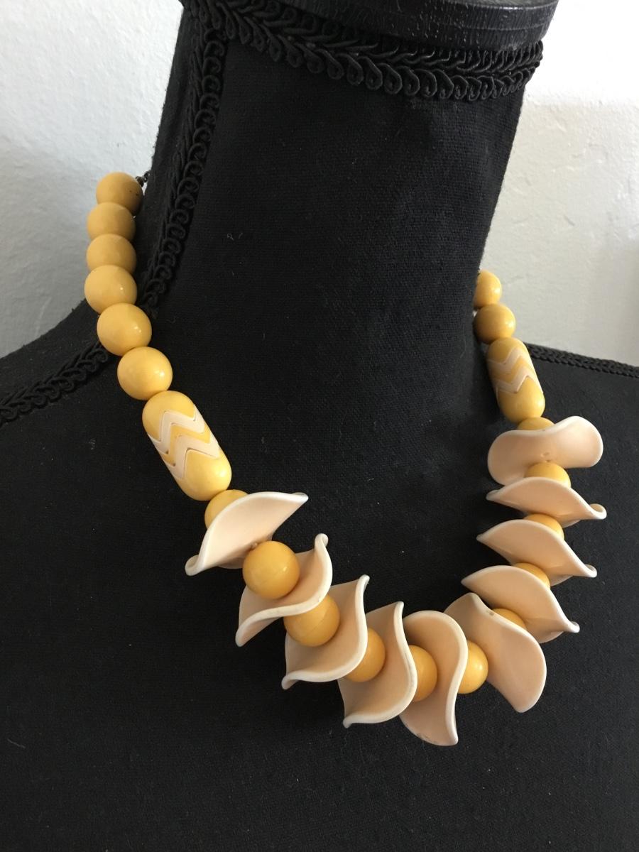 Vintage Cream and butter, scotch bead, chevron, bead, statement, necklace