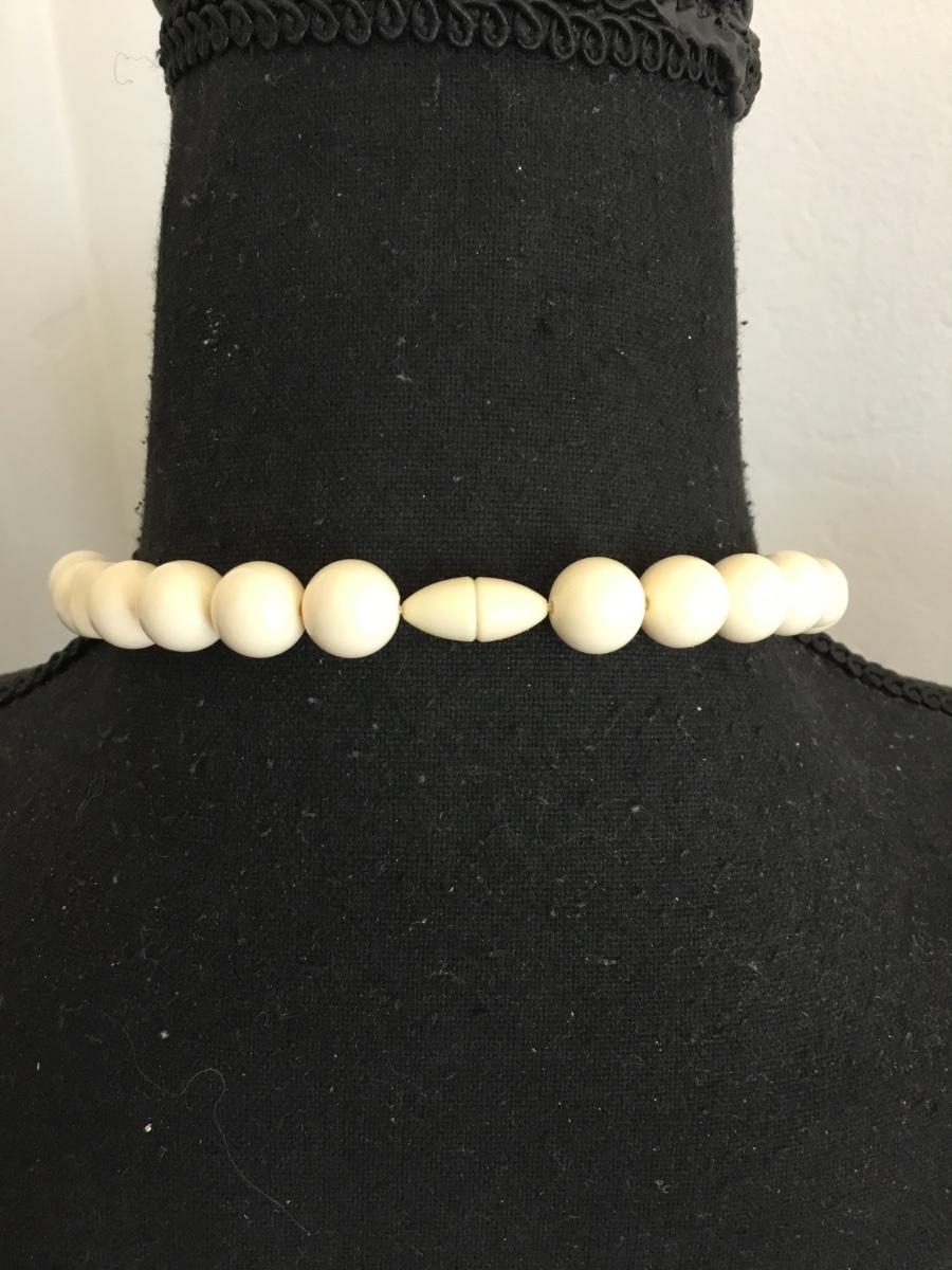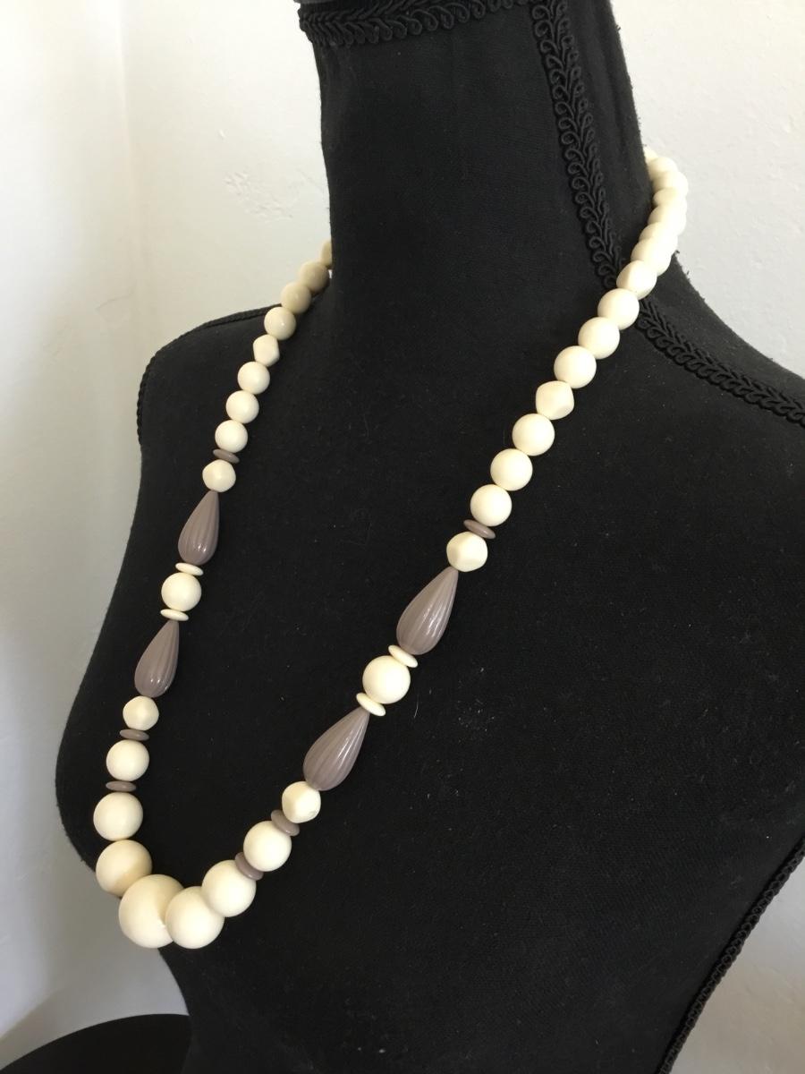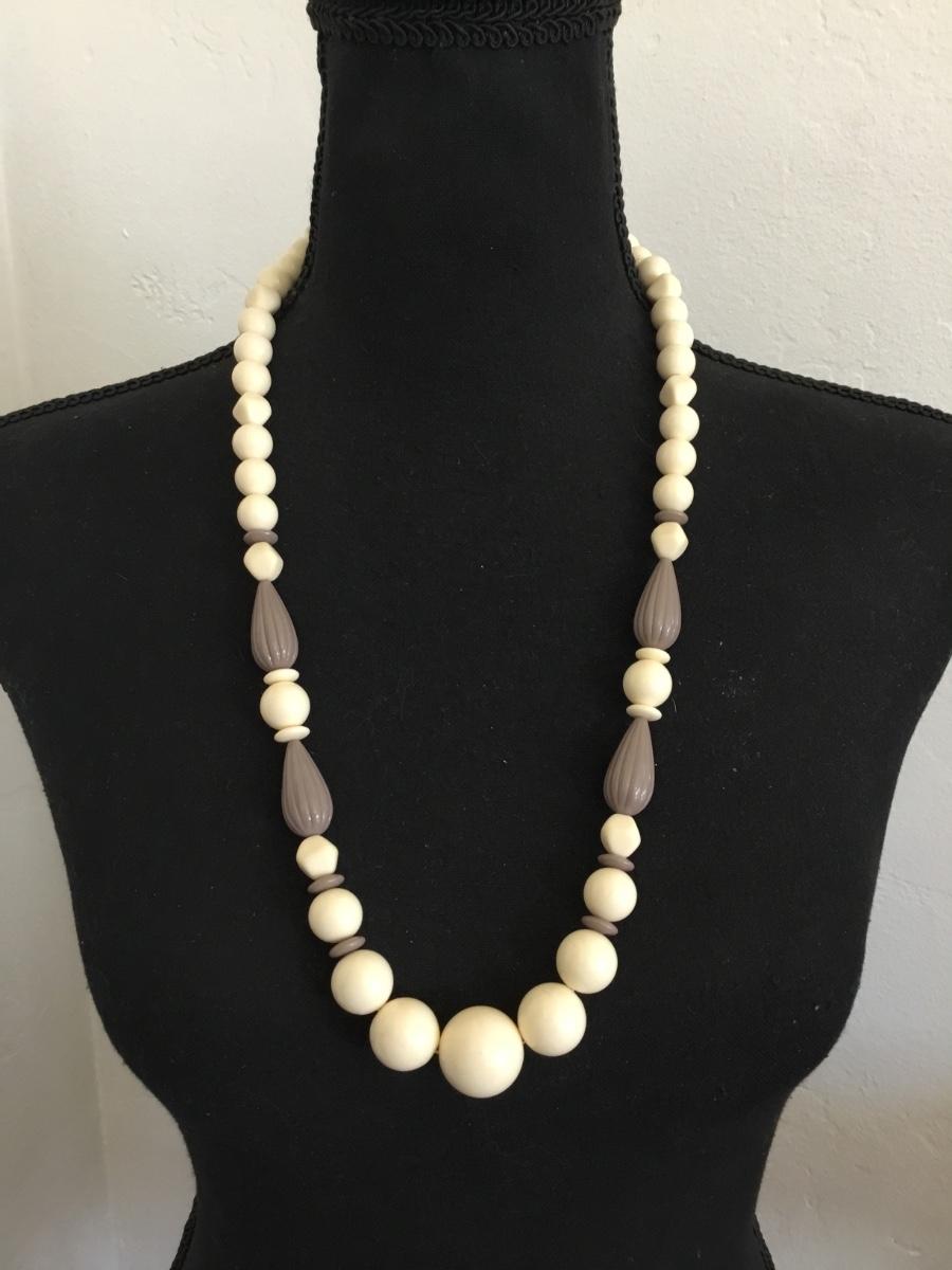Vintage cream, bead statement, necklace with barrel clasp