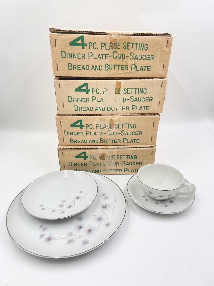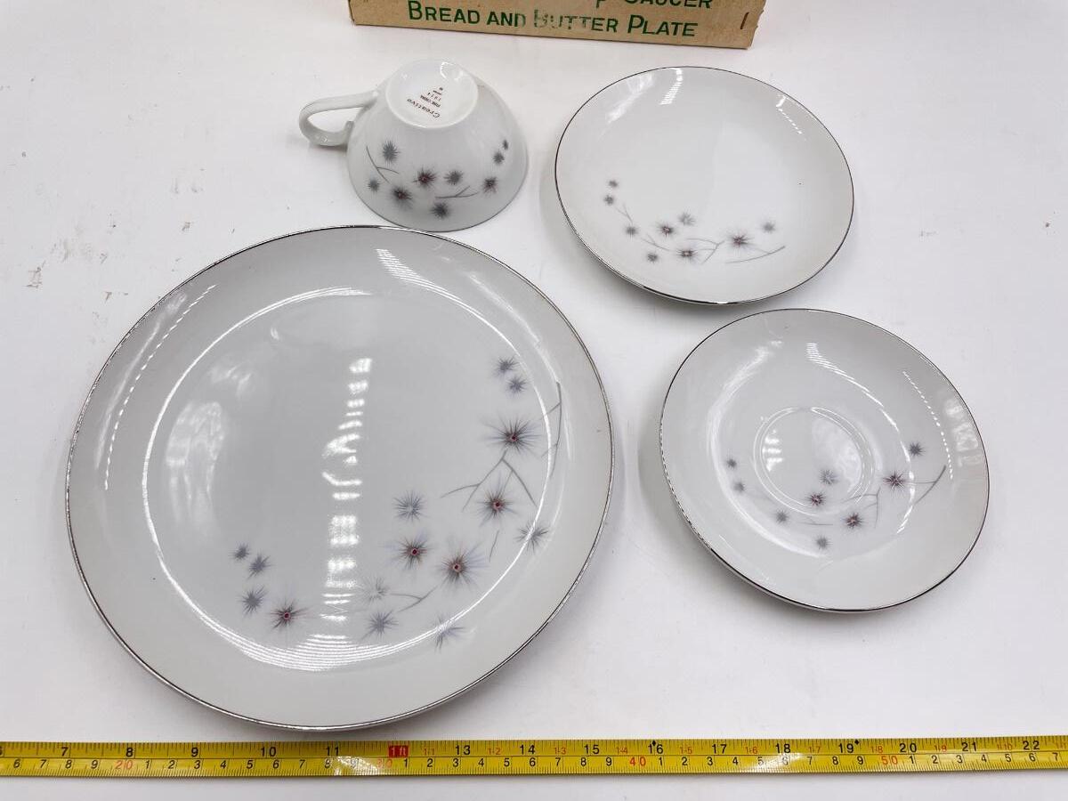 VINTAGE CREATIVE FINE CHINA “PLATINUM STAR BURST” SET OF 18