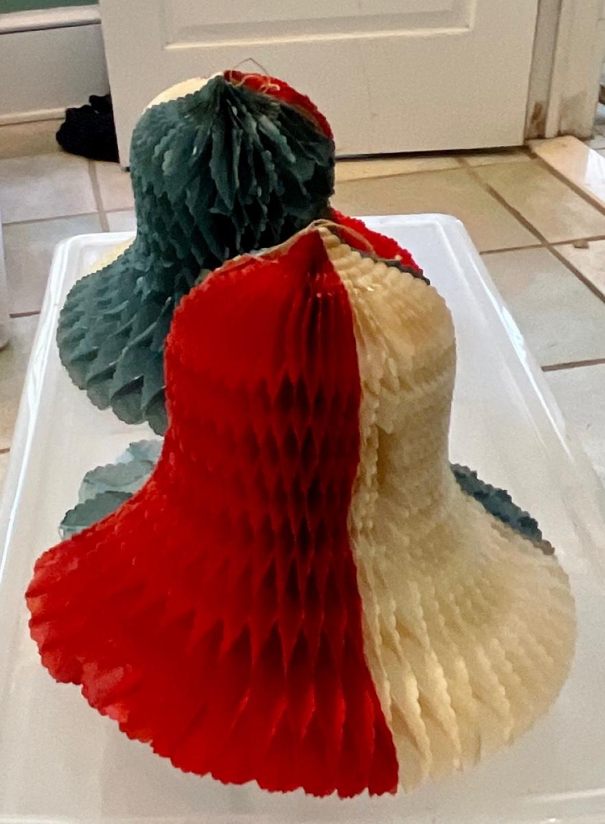 Pair 10” Vintage Mid Century Patriotic  Crepe Honey Comb Bells