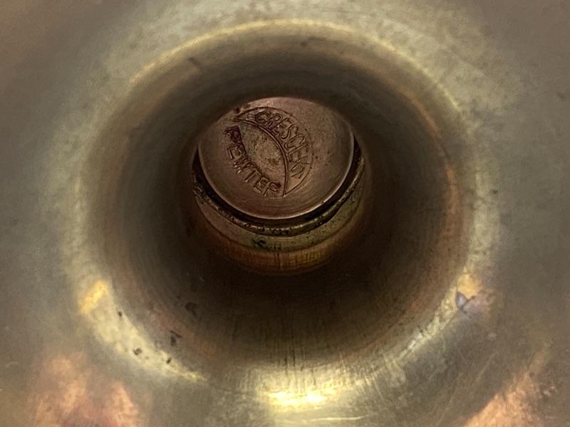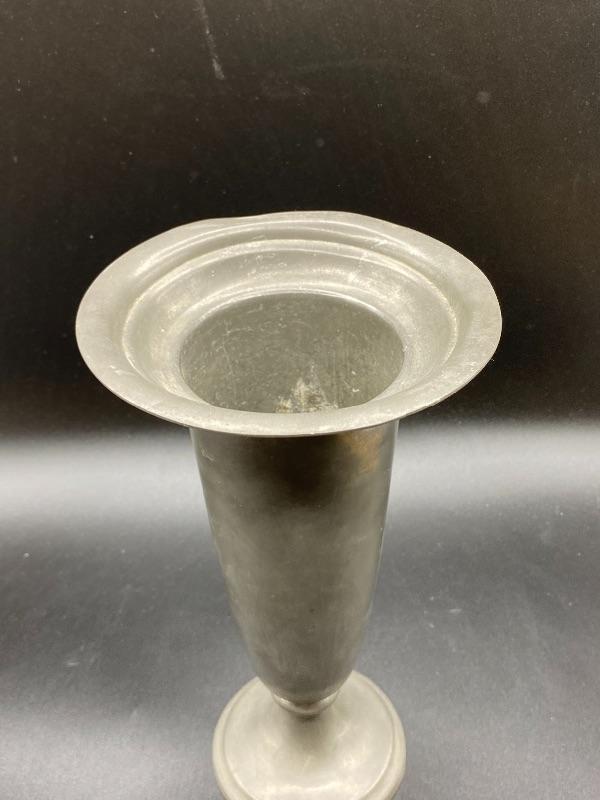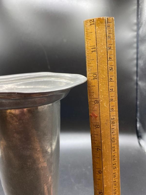 Vintage Crescent pewter vase. Has a couple dings and dents, nothing too bad though. Stands about 10" tall.