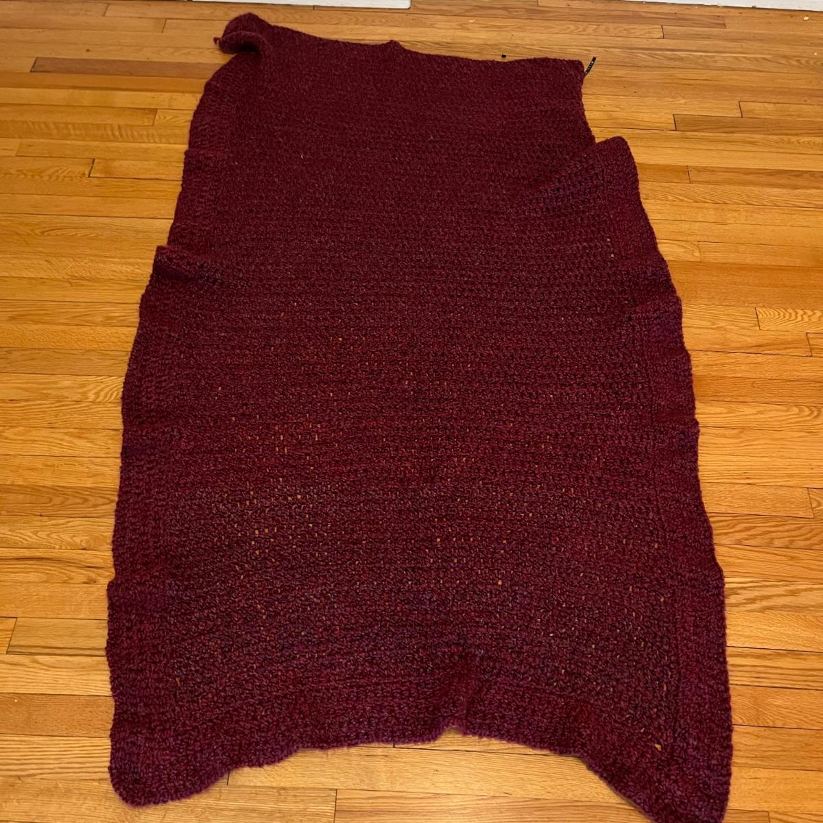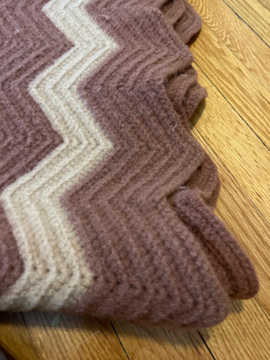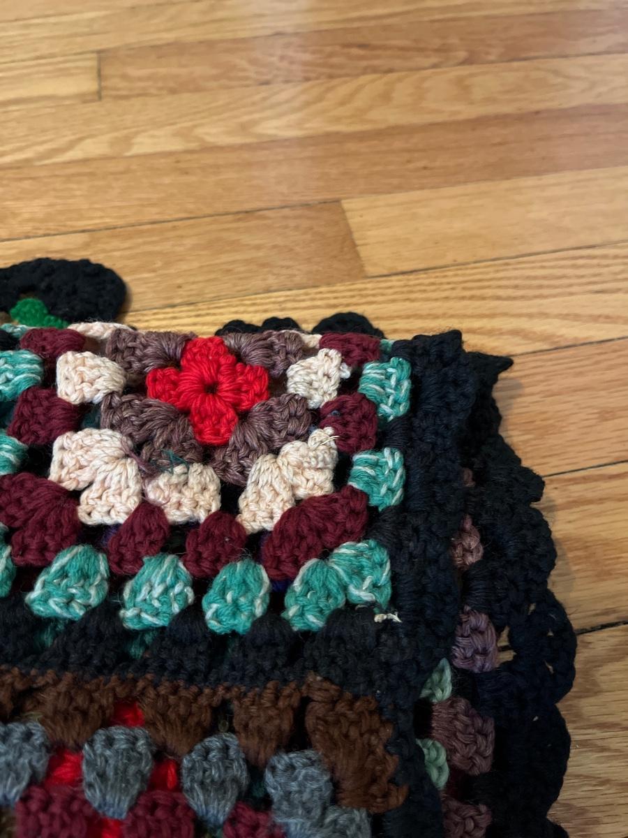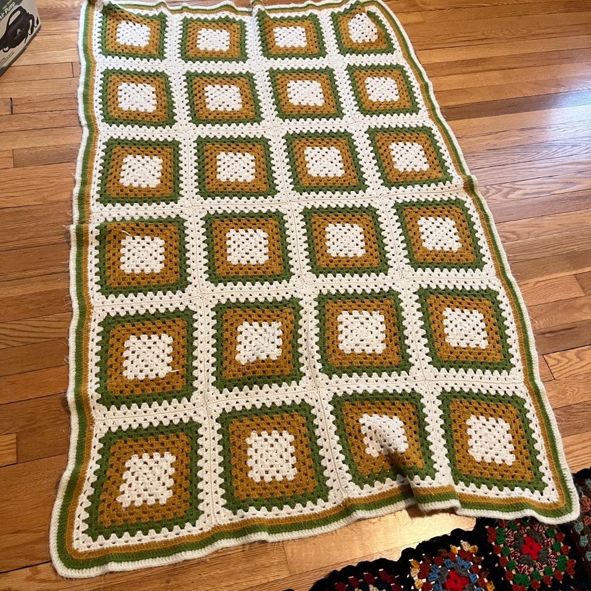 Lot includes four colorful hand crocheted in a variety of styles and colors. The tan afghan feels as if it is made of wool and it is heavier than the other blankets/afghans. Largest blanket measures 48” x 72”.