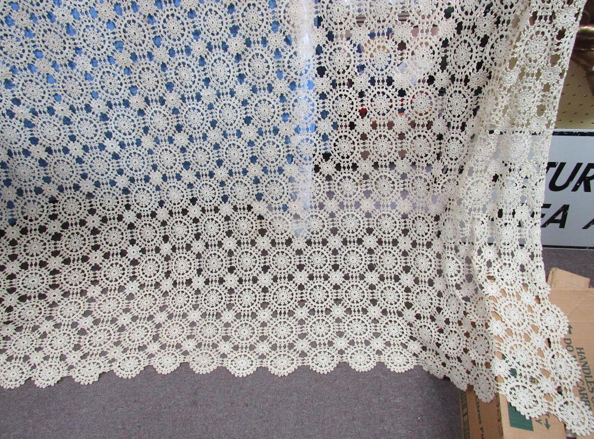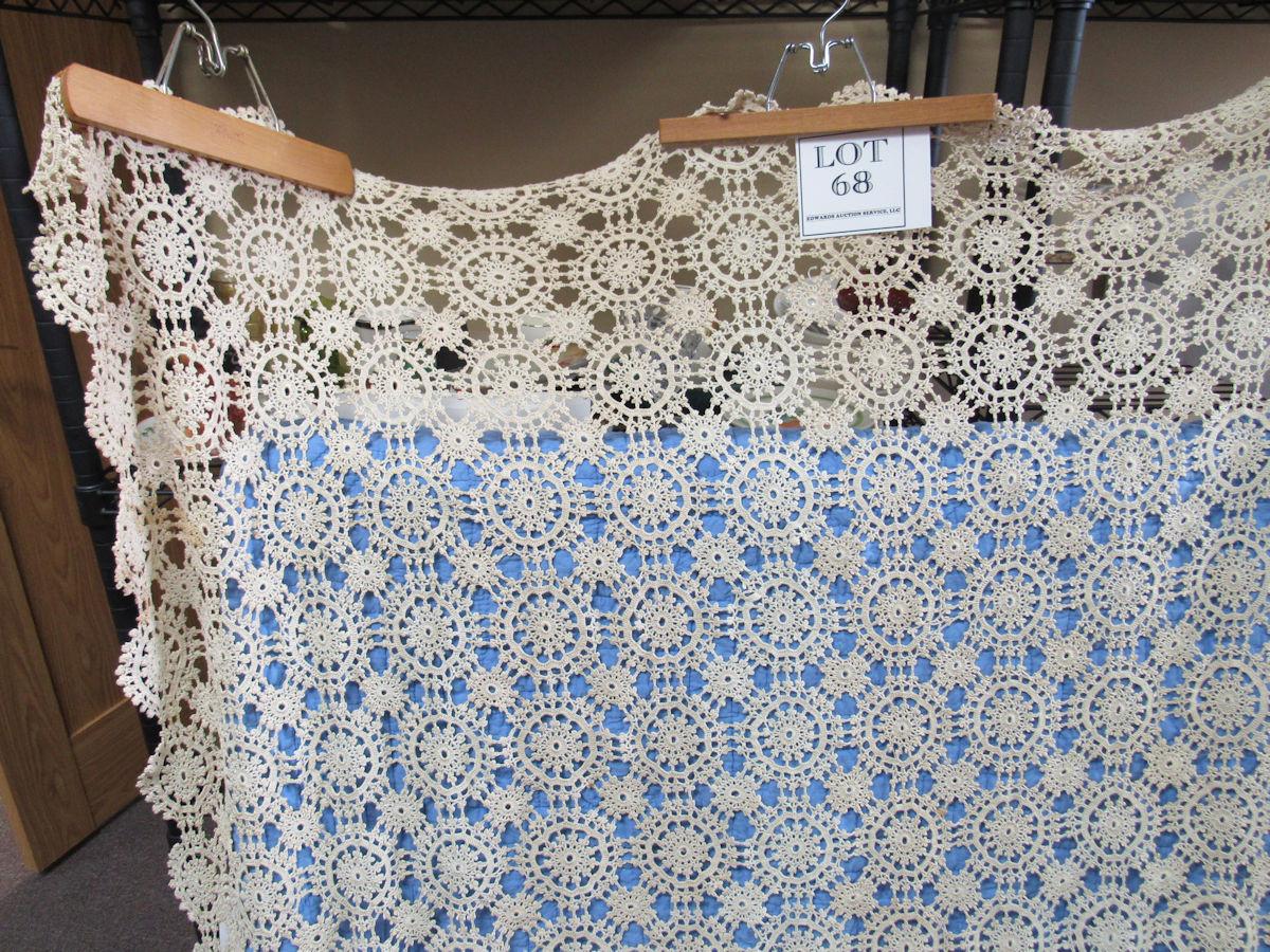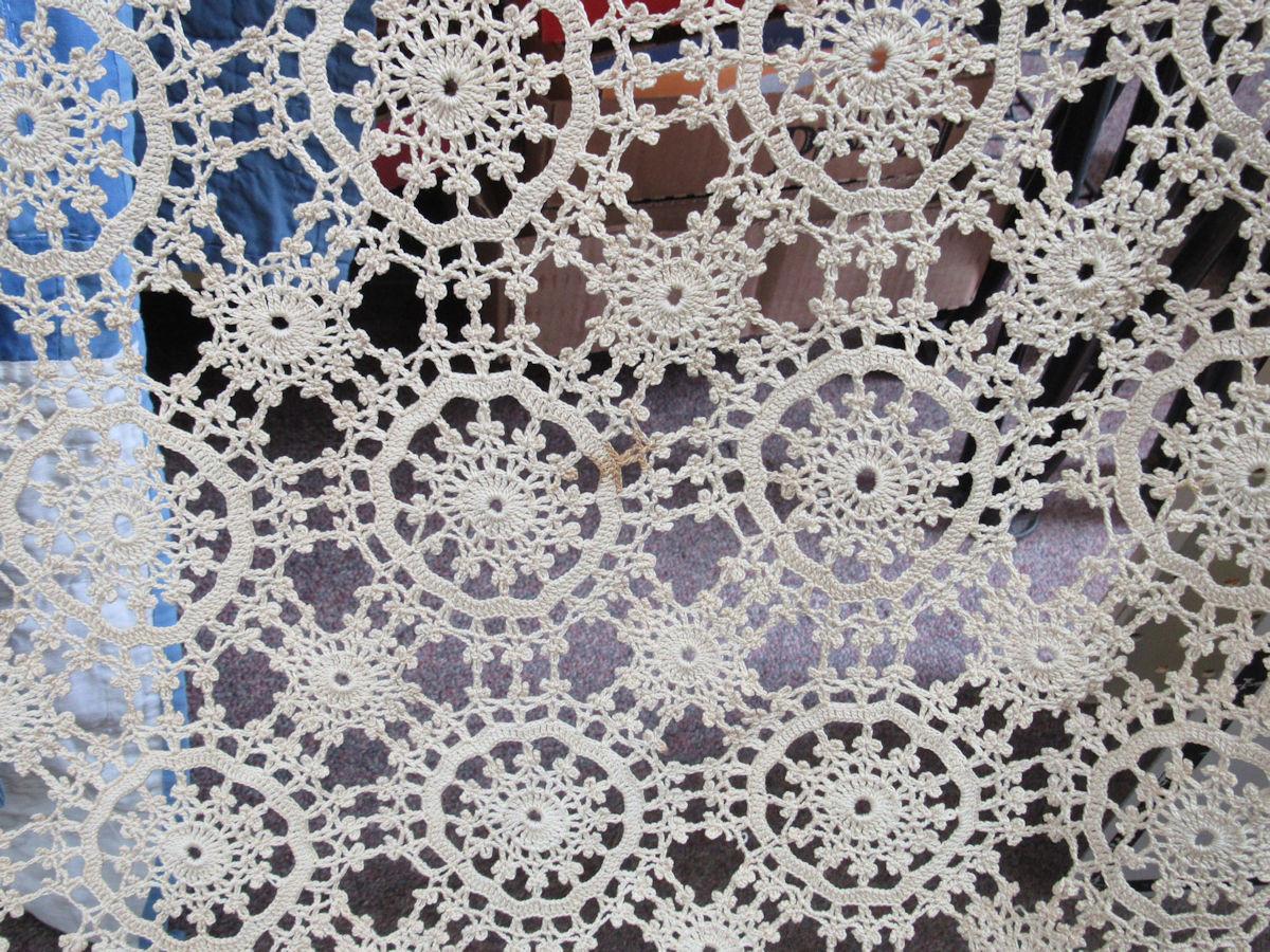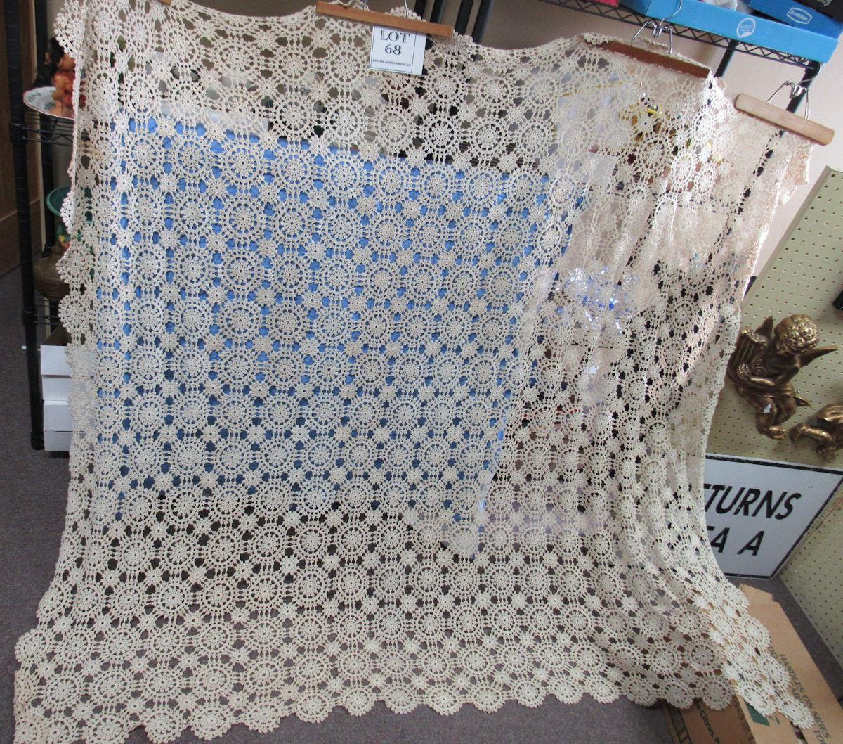 Very Pretty Vintage Crocheted Table Cloth Huge Appr 66 x 72, Read Description.