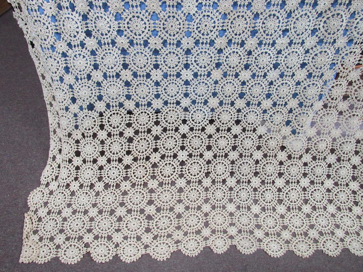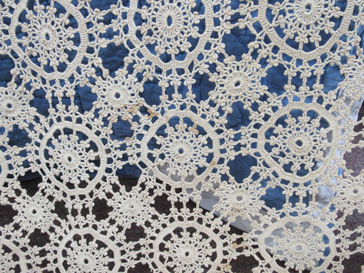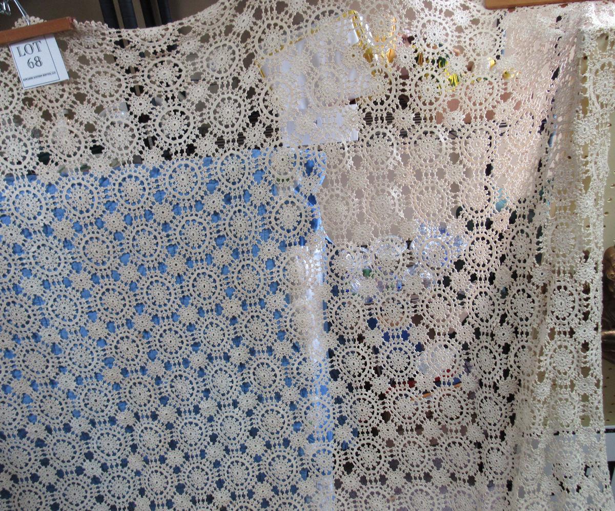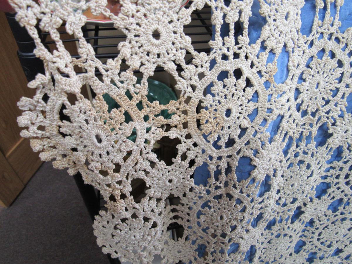 Very Pretty Vintage Crocheted Table Cloth Huge Appr 66 x 72, Read Description.
