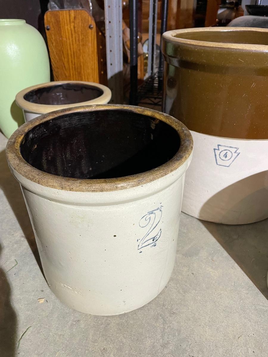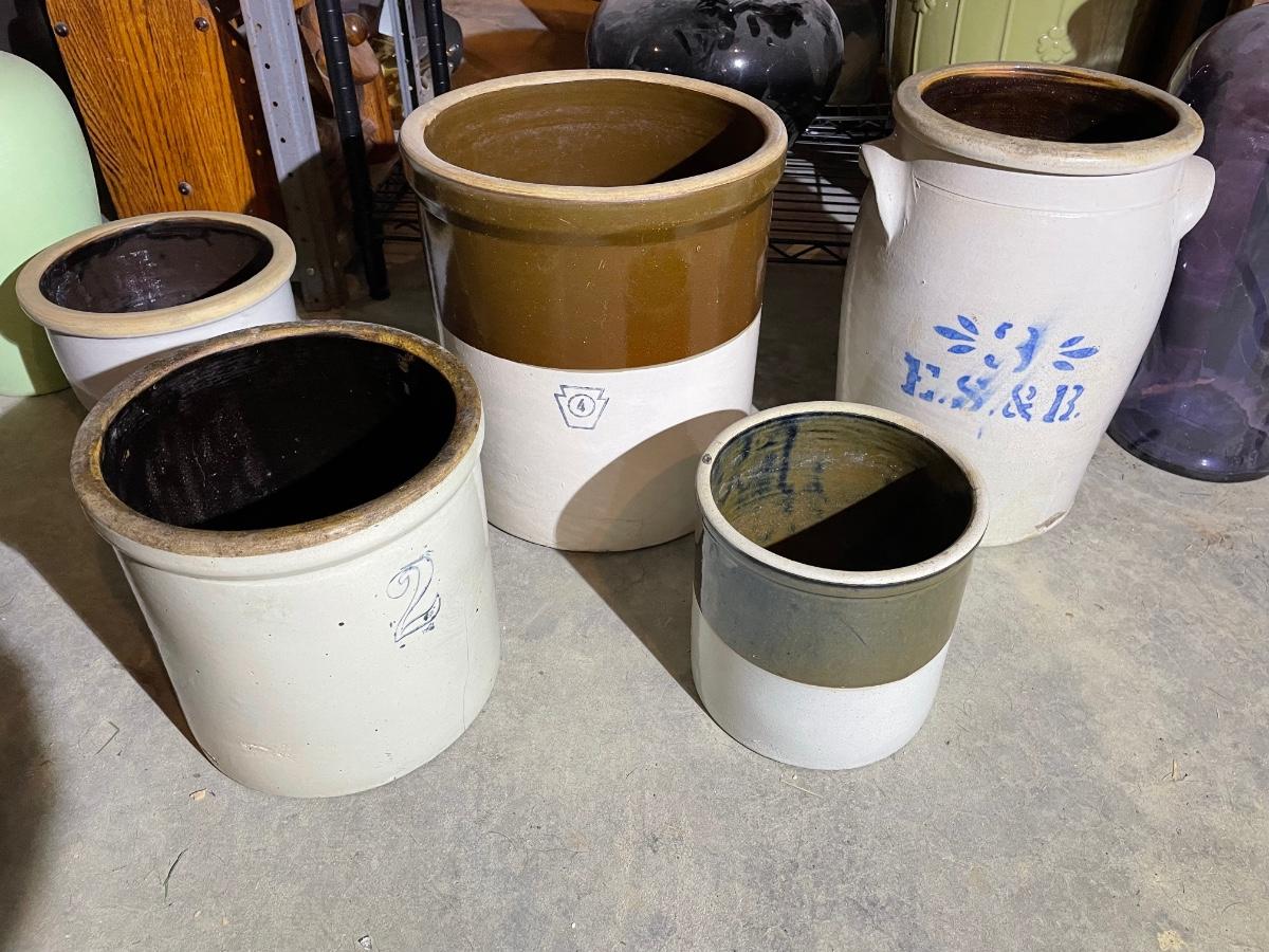Vintage Crock Lot 4pcs. Good Condition! Ranging from 8" to 14" high.