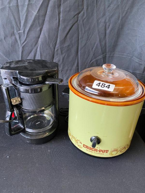 Vintage Crock Pot and Small Coffee Maker-Lot 484