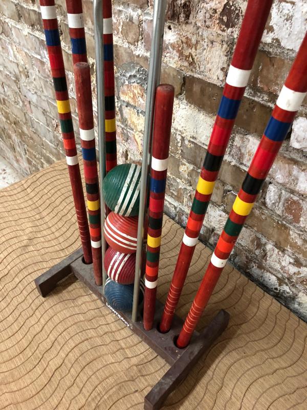 Croquet set is missing one mallet 2 balls and the wire hoops.