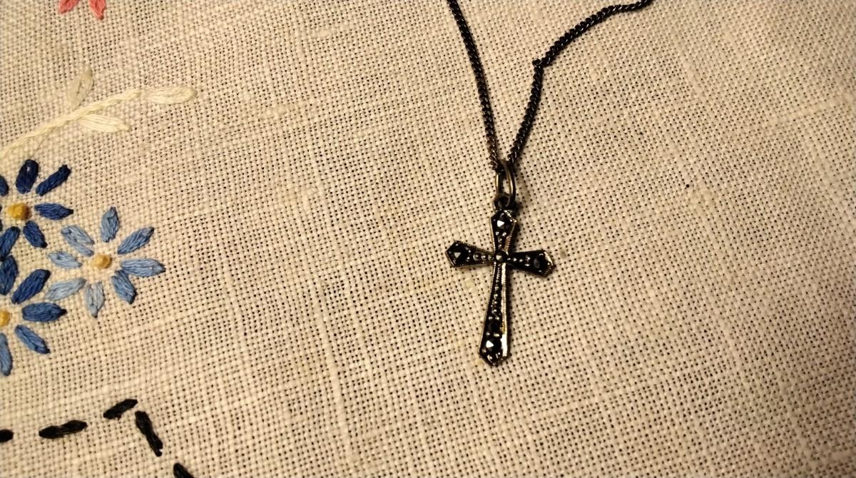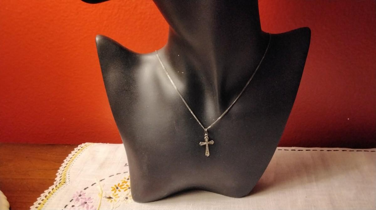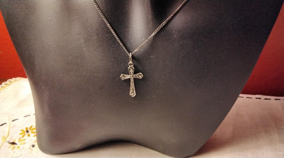 Vintage Roma Marcasite 925 Cross 20" 925 Necklace