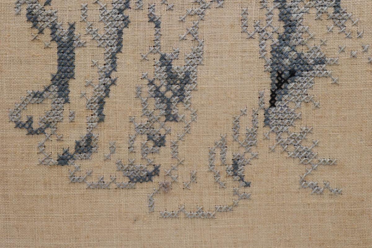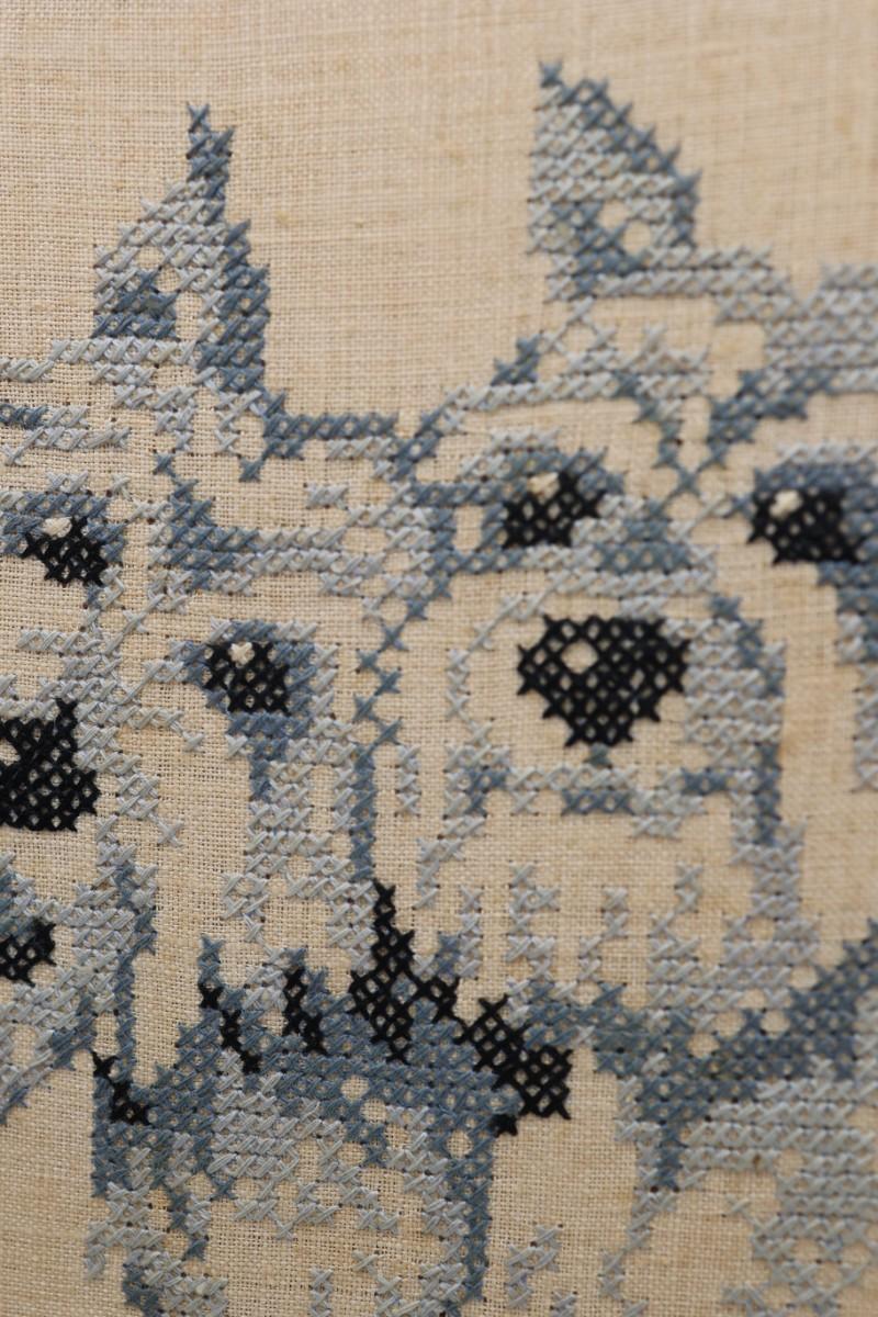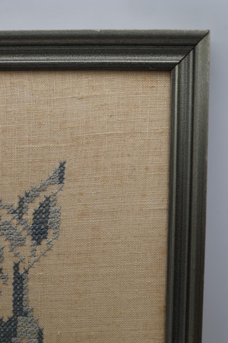 Blue Vintage Cross Stitch Needlepoint Art Schnauzer Dogs.
