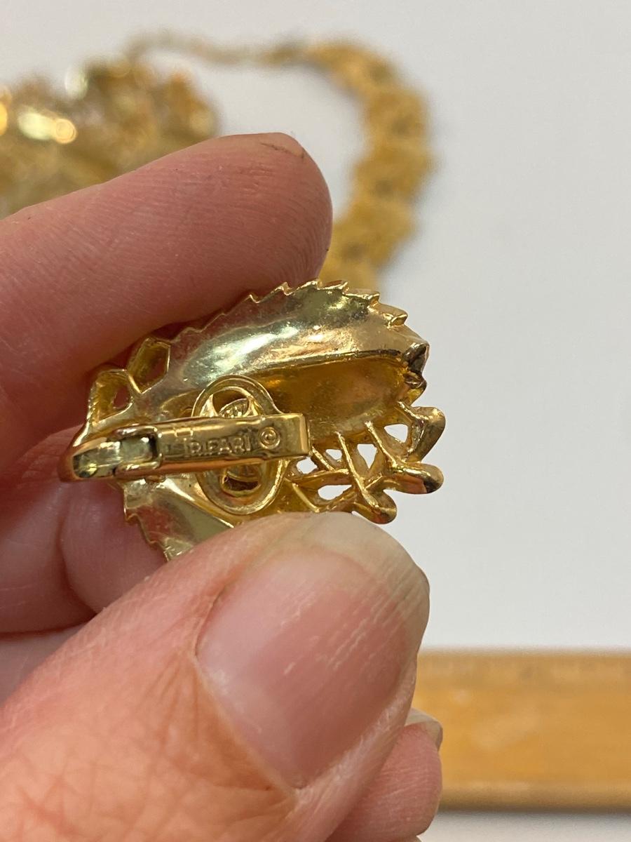 Vintage Crown Trifari 3 Piece Gold Tone Holly Leaf Jewelry Set