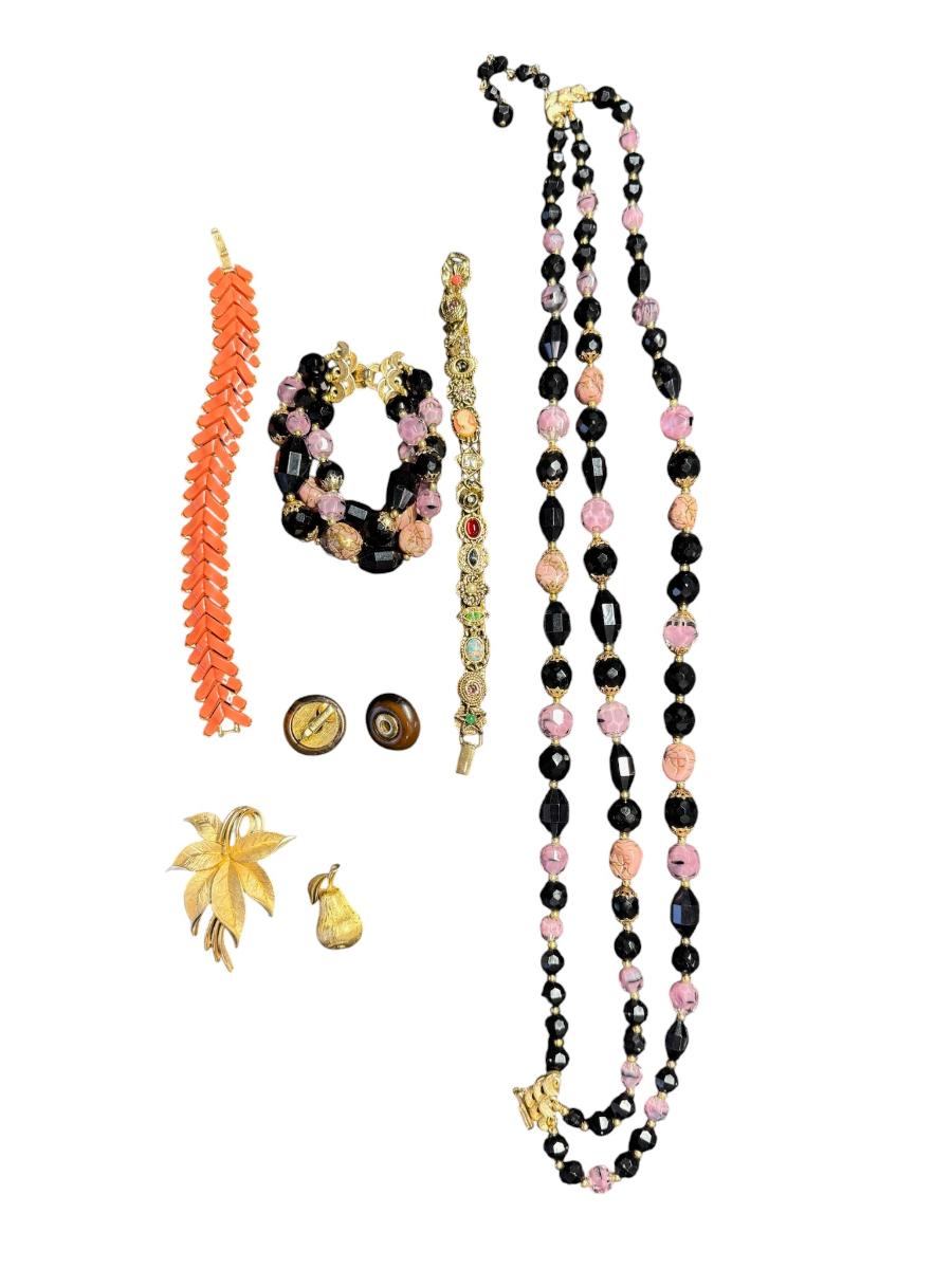 Includes bracelets, pins, earrings, and a necklace. Total of seven pieces. [RM]