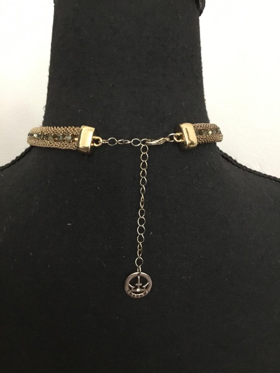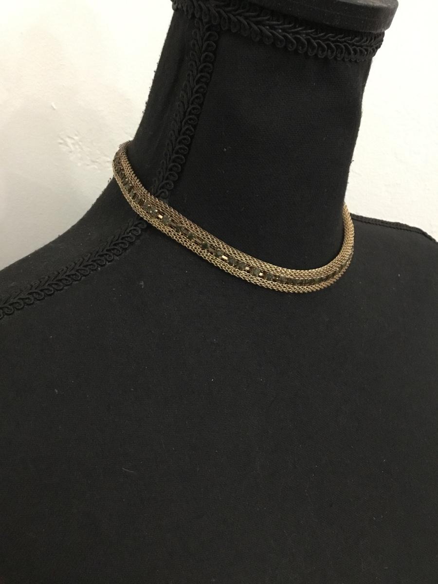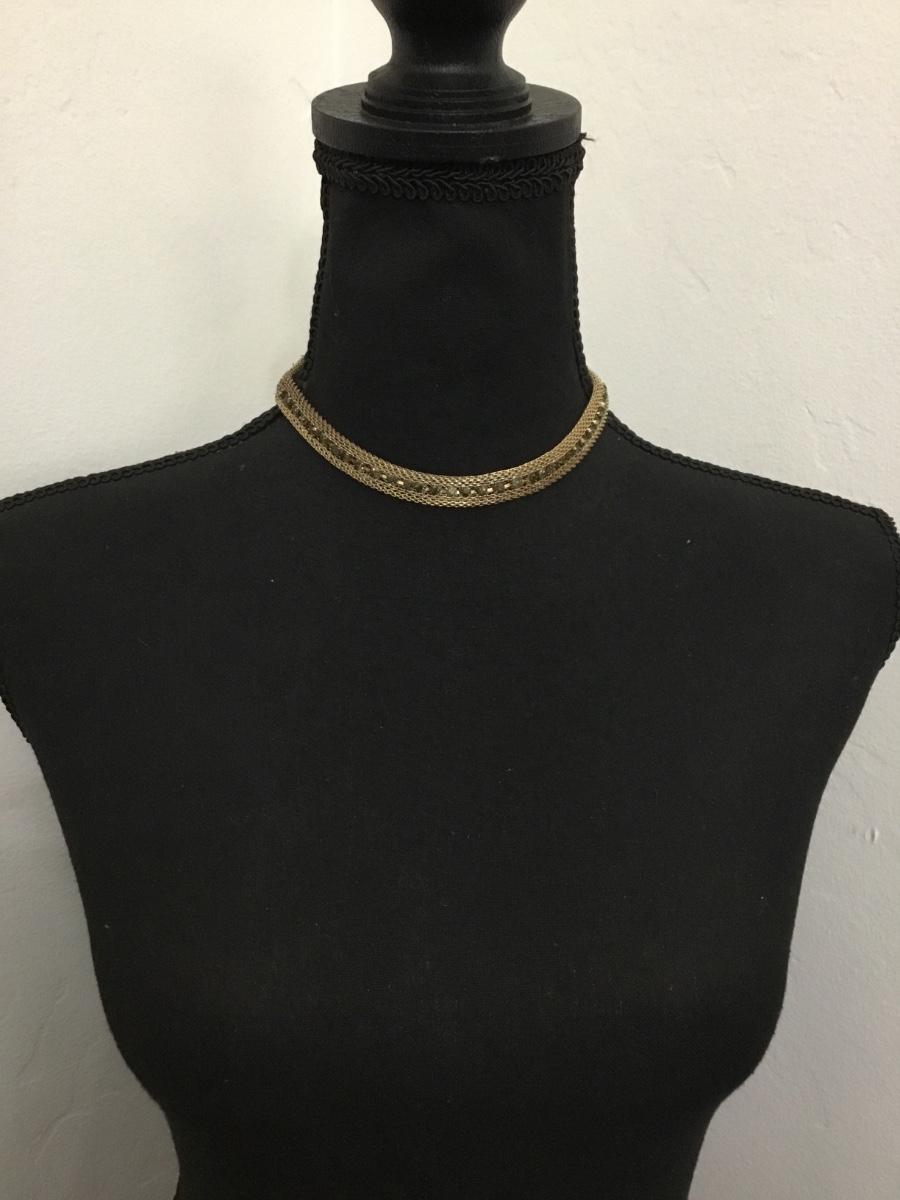Vintage crown, Trifari, gold tone, mesh, smoky, rhinestone choker