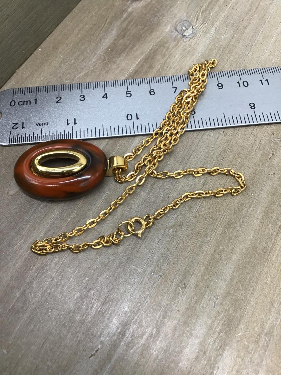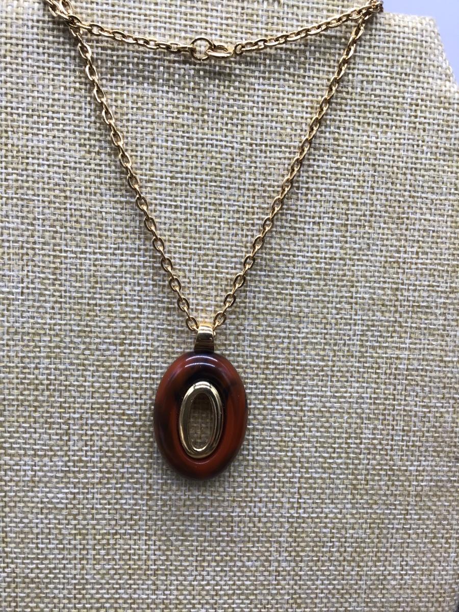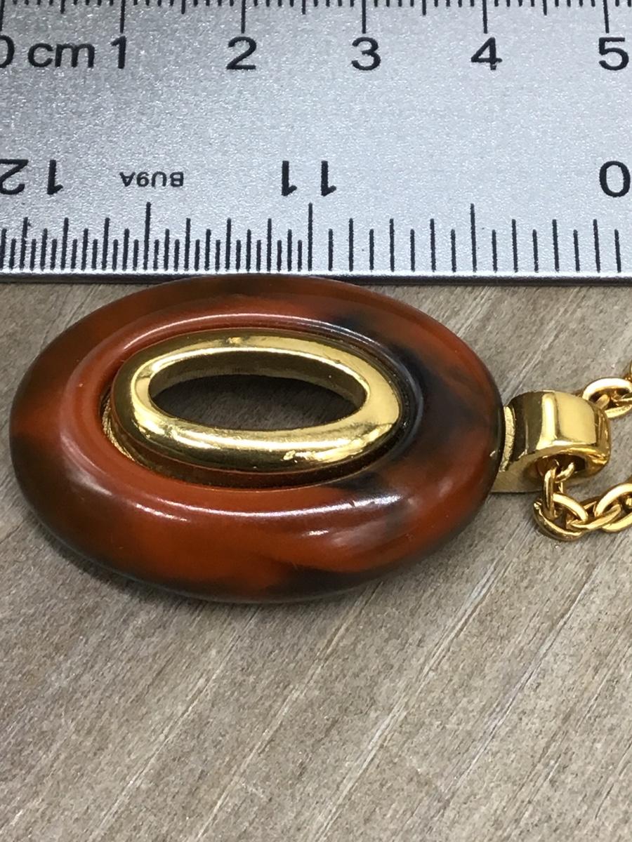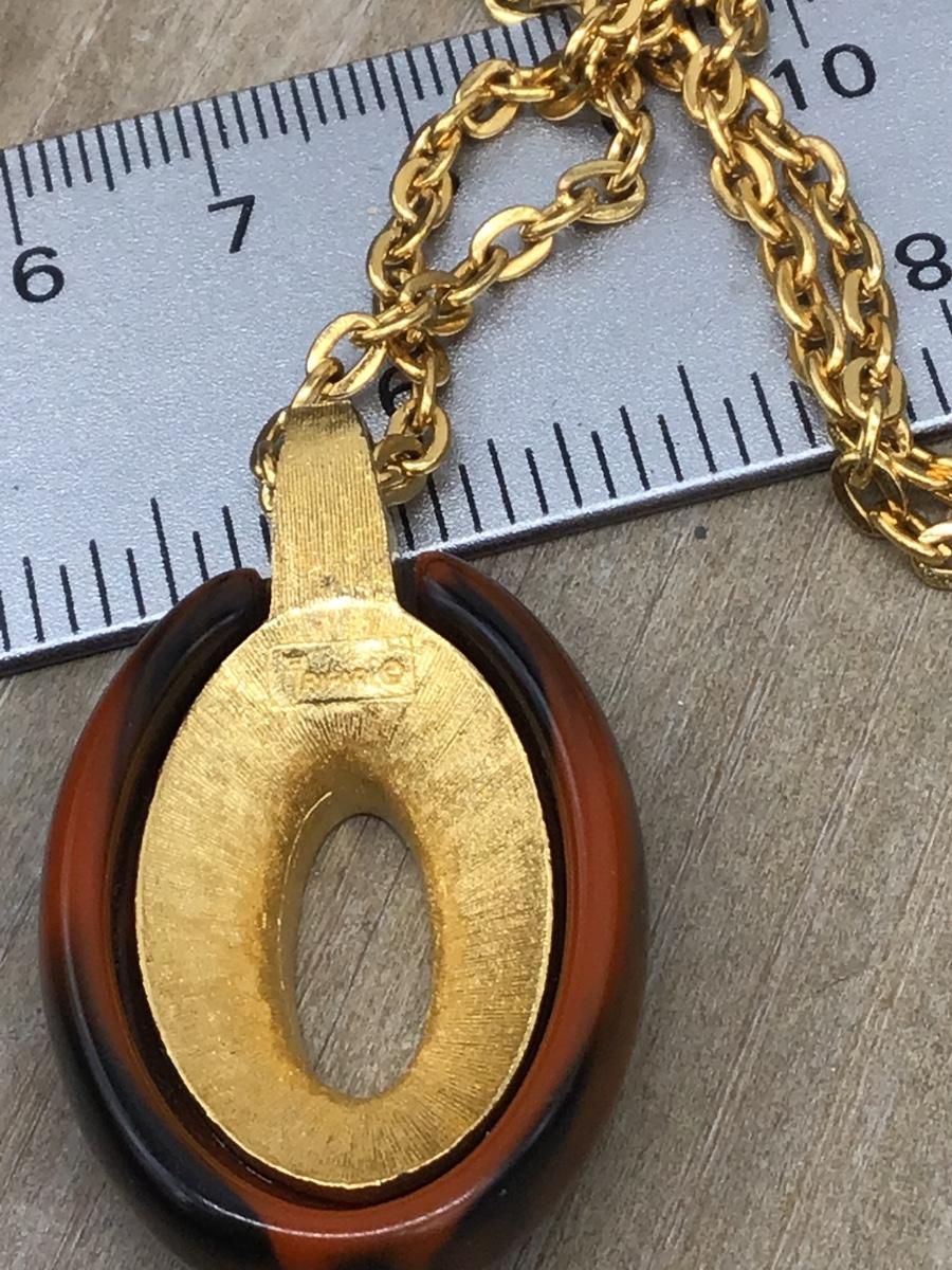 Vintage Crown Trifari Necklace Long Brown Gold Lucite Chain Statement